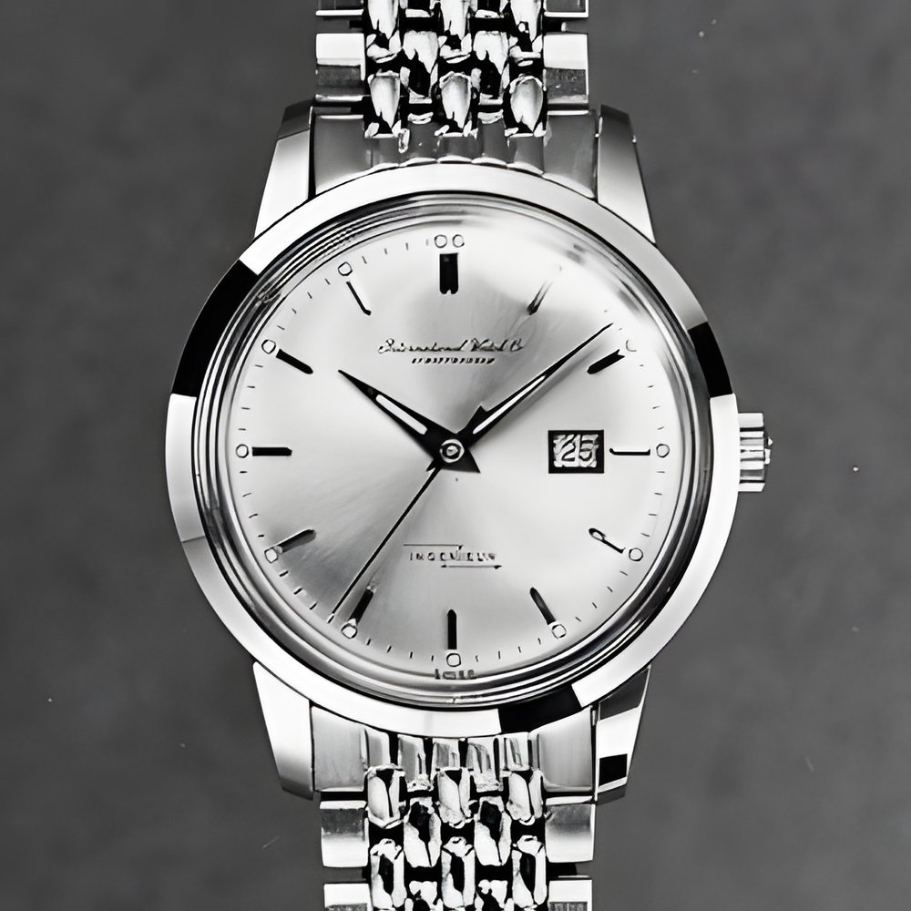 Created especially for the demanding timing needs of engineers, technicians, chemists, pilots, -etc., this watch has extra protection against magnetic influences. Sealed into two special cases, the movement is unaffected by magnetic fields up to 1 ,000 Gauss. All-steel case, waterproof up to 1 0 atmospheres, applied gry gold markers with luminous points. (INTERNATIONAL WATCH CO “Ingenieur”)