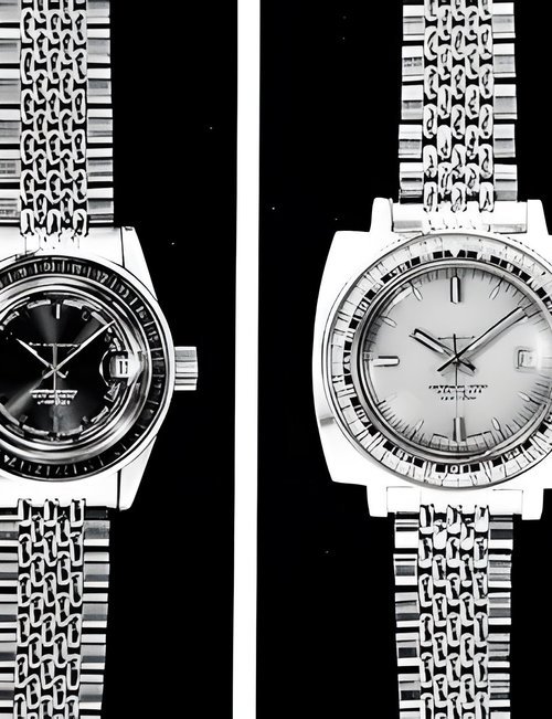 For him and her - underwater. This new “Caribbean” line comes in 14 separate versions, all guaranteed waterproof up to 2,000 feet, Do-it-yourself touch should you scratch or damage the glass on a rock when below: each watch is equipped with replacement glasses and a special key to change them in a simple operation, quickly carried out. (JENNY - HASTE “Caribbean 700”)