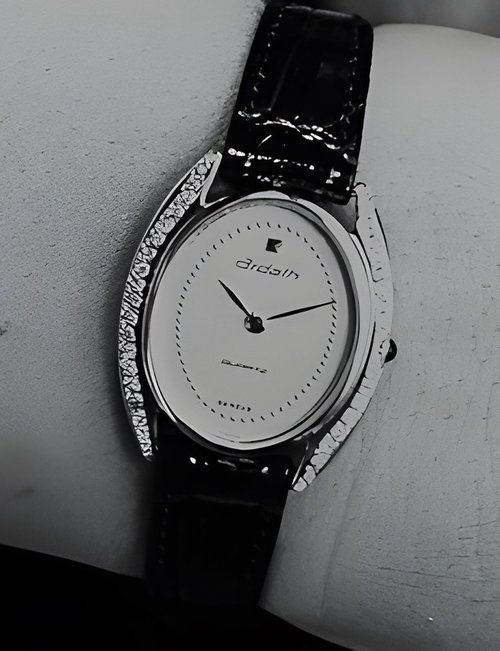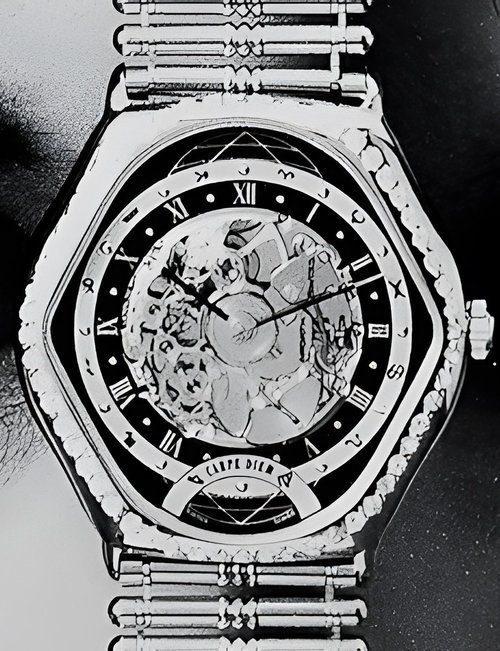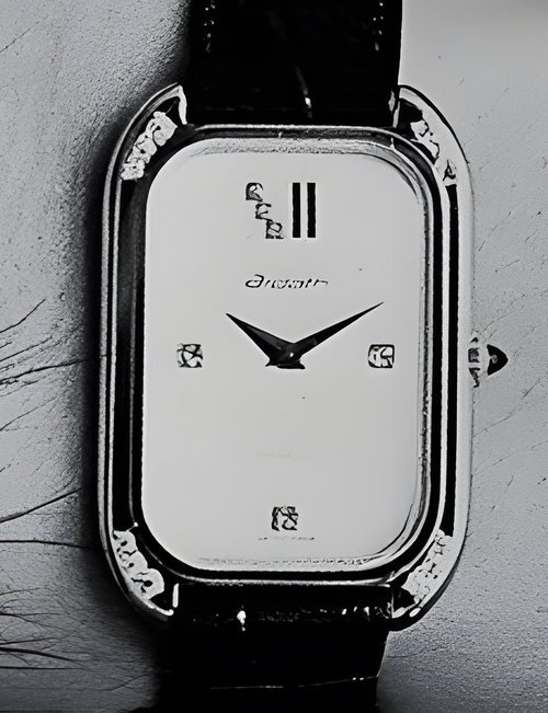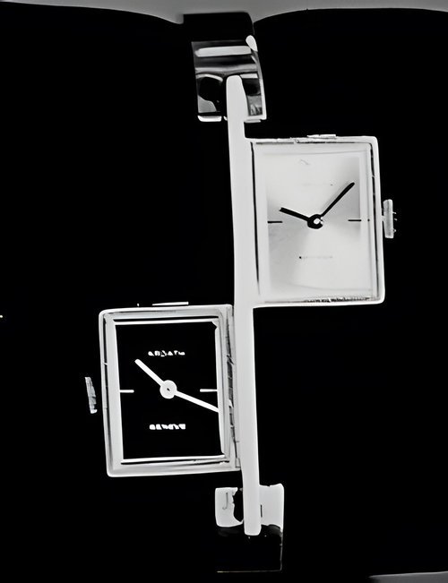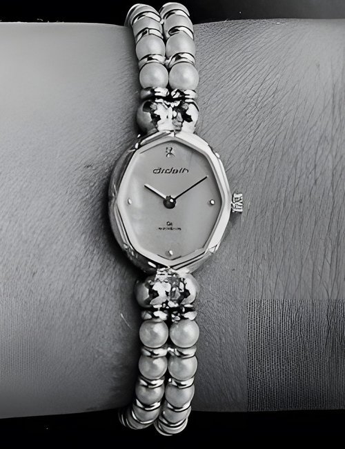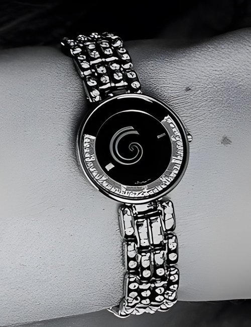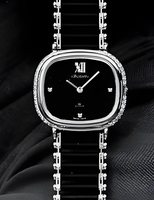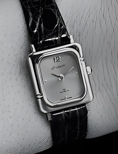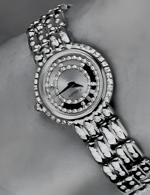 An eye-catching model among costume watches This is a clip watch in rhodium-leaf silver designed like a rose. Also available in vermeil (rose or yellow giltsilver). The corolla of the rose lifts up to show the time. (ARDATH)