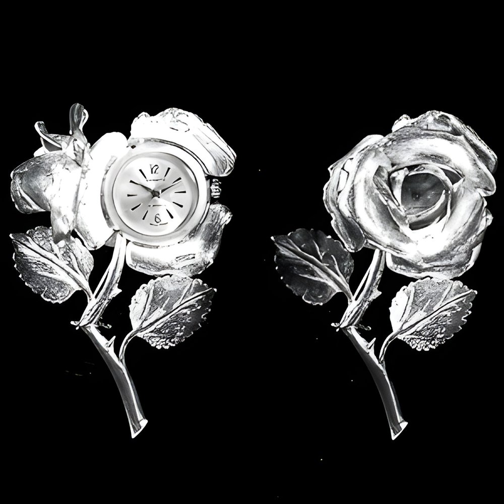a clip watch in rhodium-leaf silver designed like a rose. The