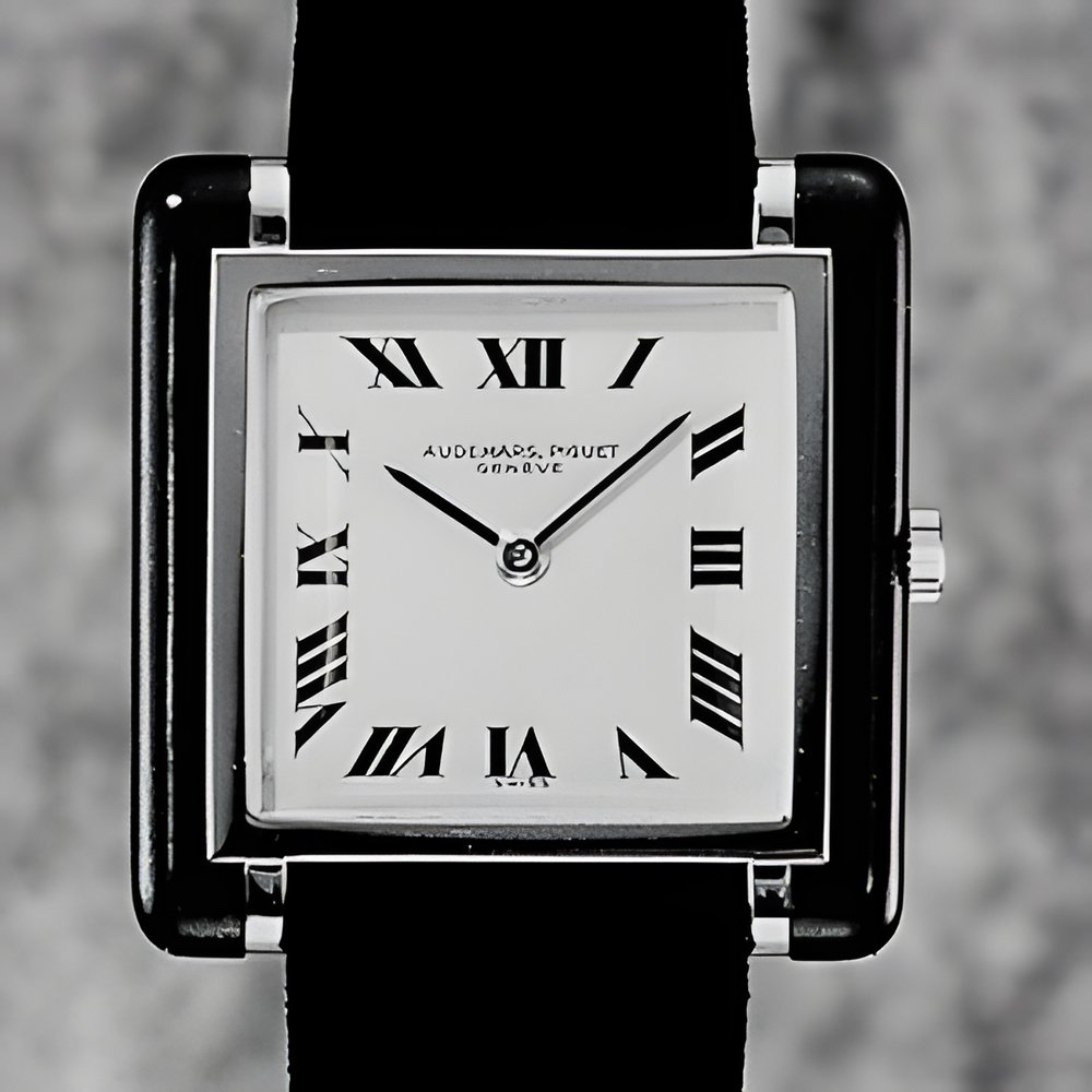 There’s a big Swiss swing back to the formerly predominant Roman system of watch dial marking. This stylish example by Audemars Piguet has a square gold case treated with enamel and the Roman numerals are painted on a gold plate. The watch has an ultra flat movement (calibre 2003 , height 1,64 mm). (AUDEMARS PIGUET)