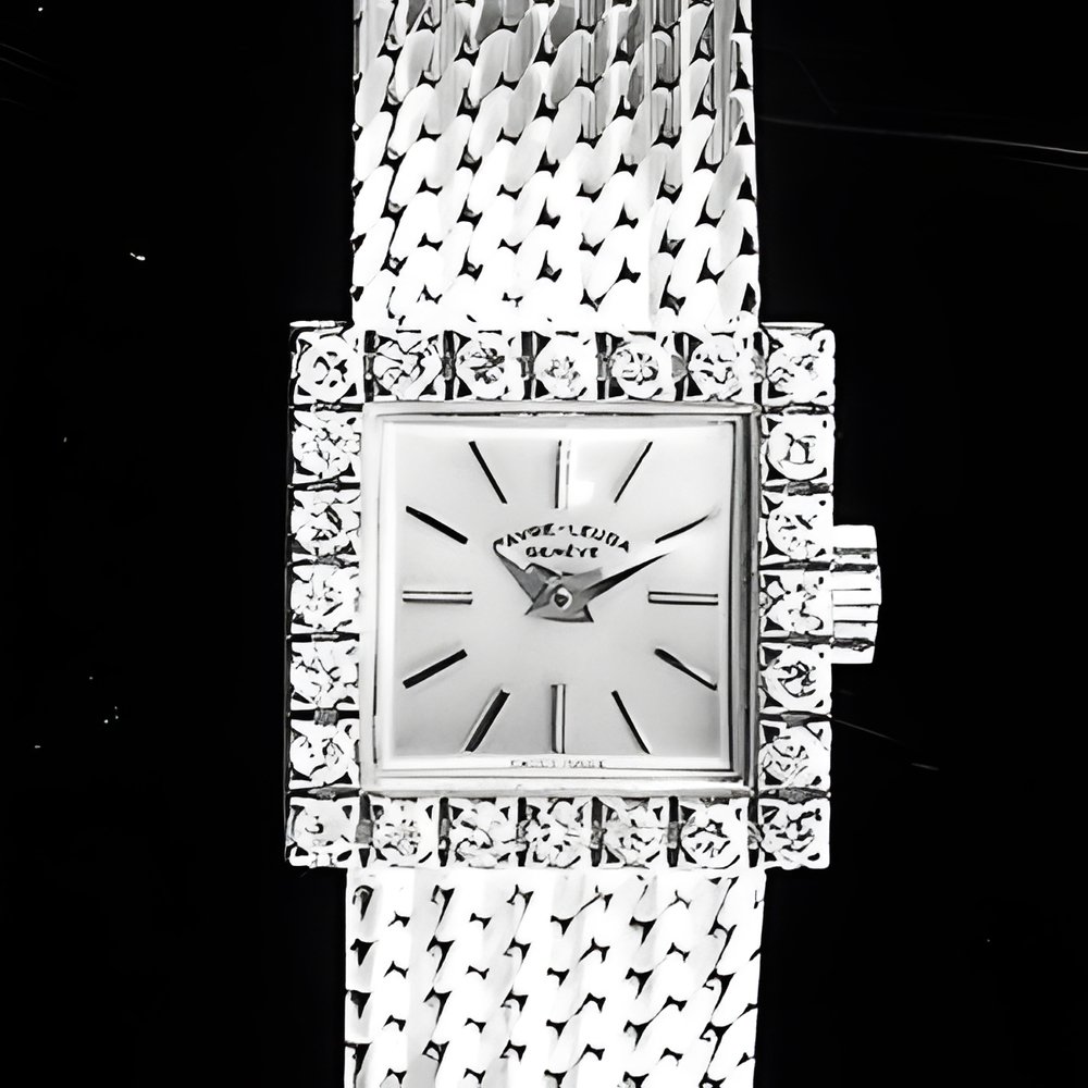 Lady’s watch, square, classic in style. Bracelet in white gold The face is surrounded by diamonds. (FAVRE-LEUBA)