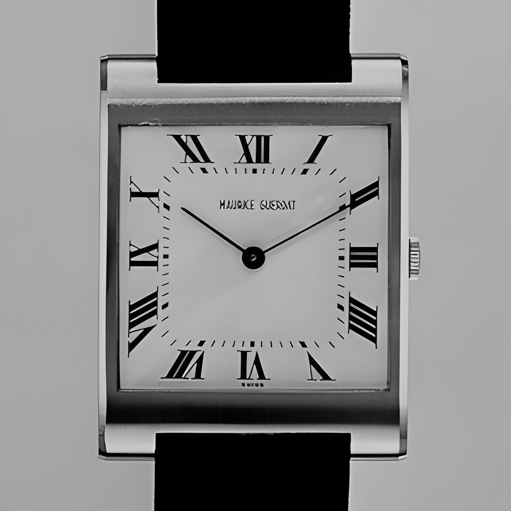Roman numerals are making a reappearance. They stand out especially well on the silver-finish dial of this boldly styled dress watch. Case in white gold. (GUERDAT)