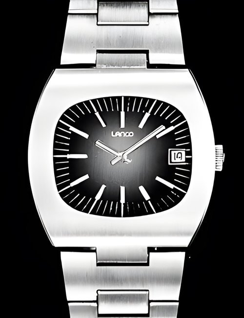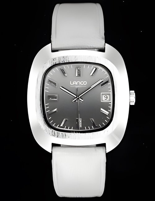 The calendar has achieved such a high degree of success that it is even appearing on ladies’ watches. This automatic model has a waterproof case in goidpiate with steel back. (LANCO)