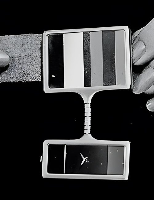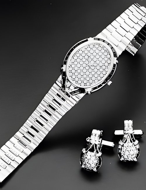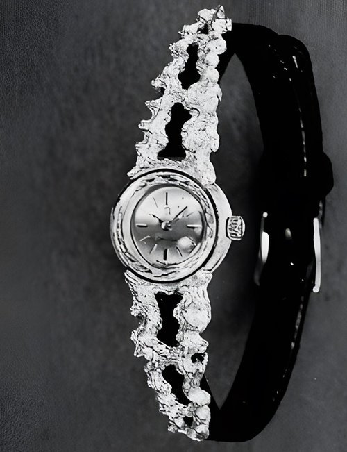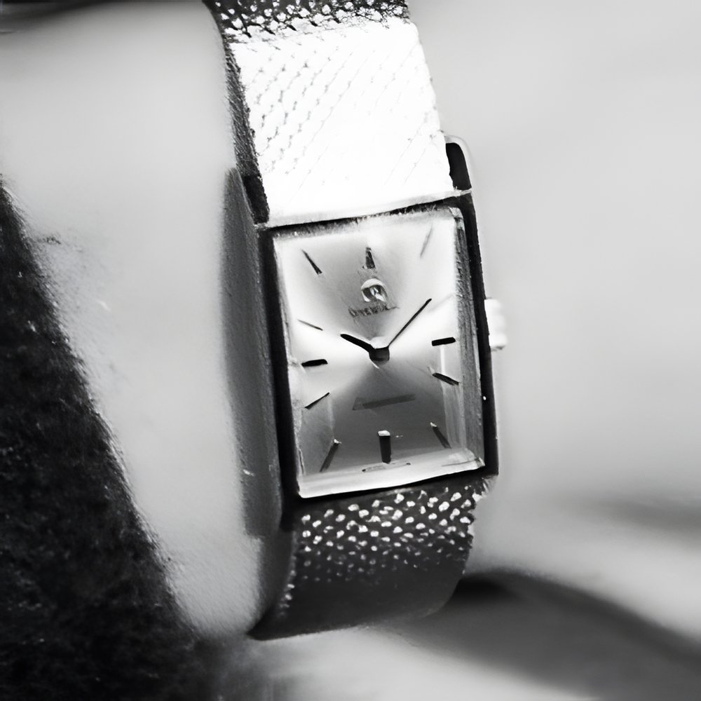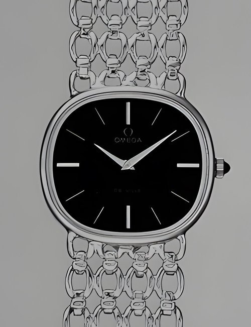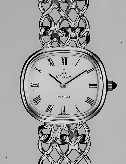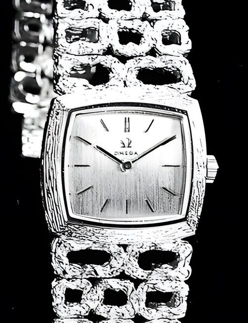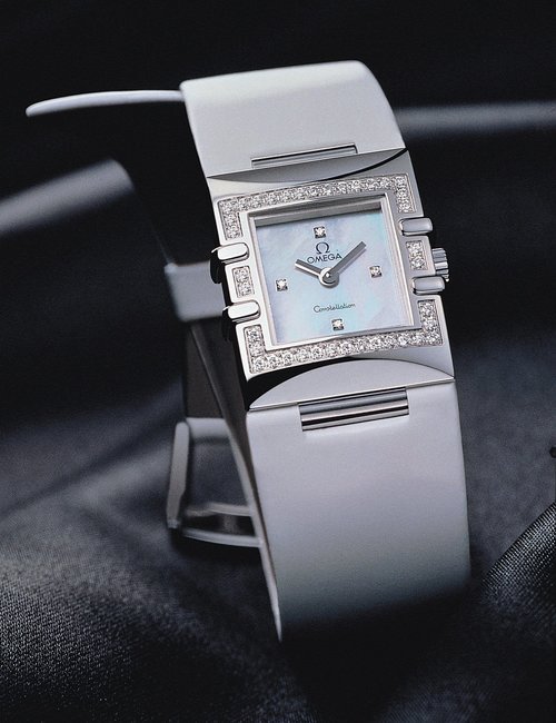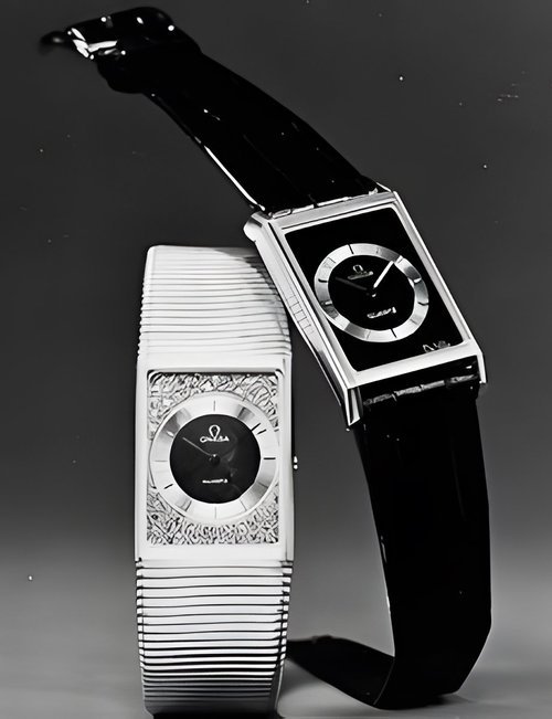 This extremely modern long-style watch has one of the tiniest automatic movements in the world. Case and bracelet are in 18 ct gold. The dial, readable at a glance, is one of the merits of this new style. (OMEGA "Ladymatic)