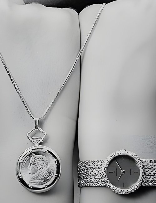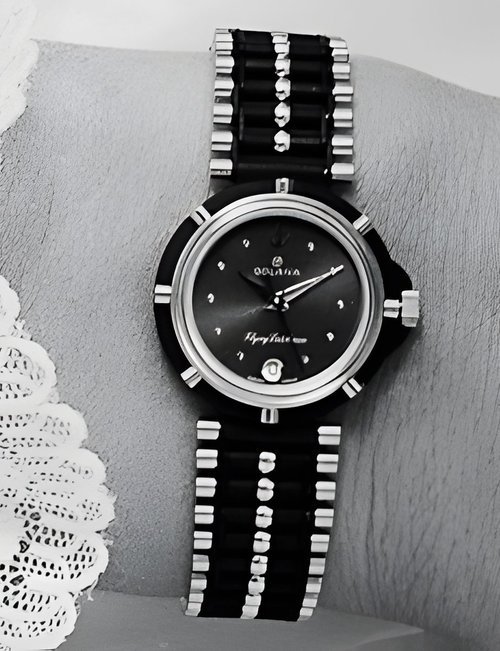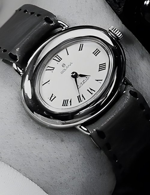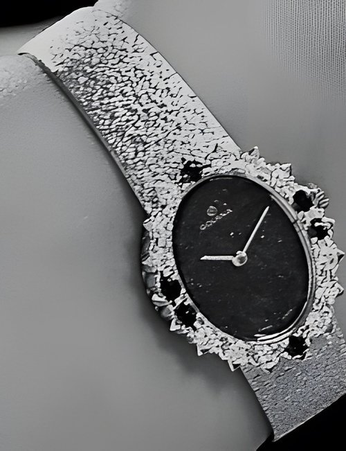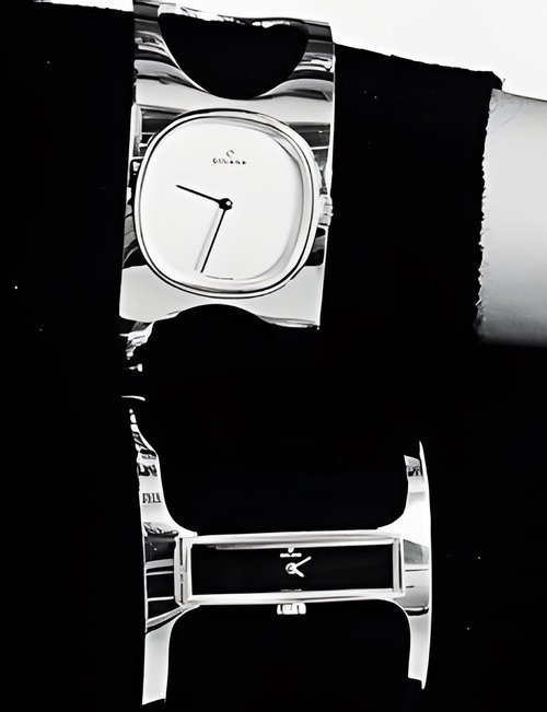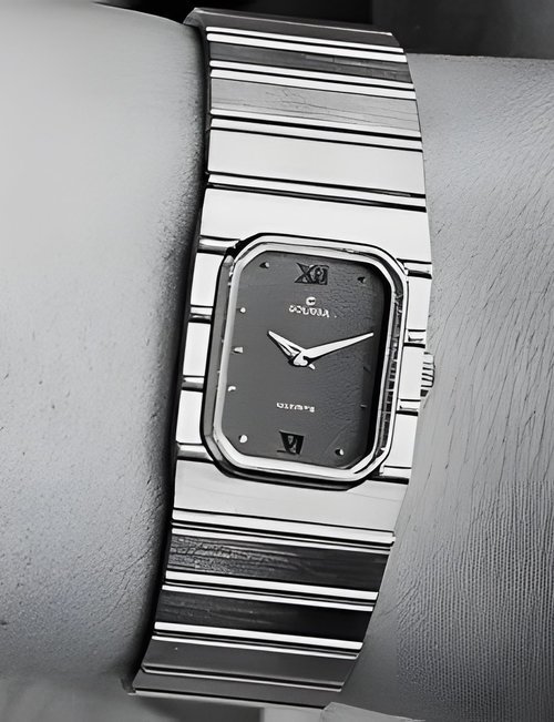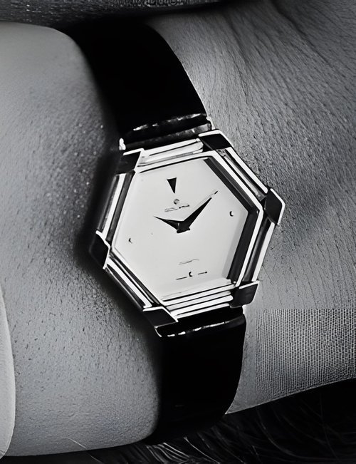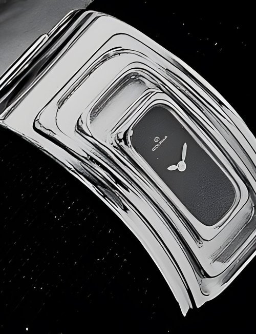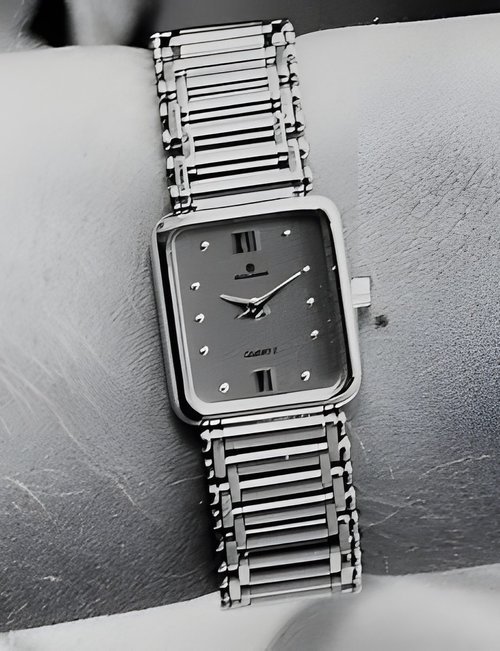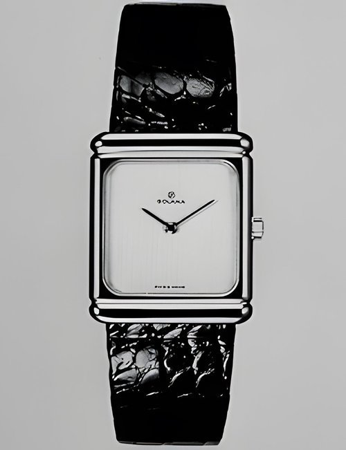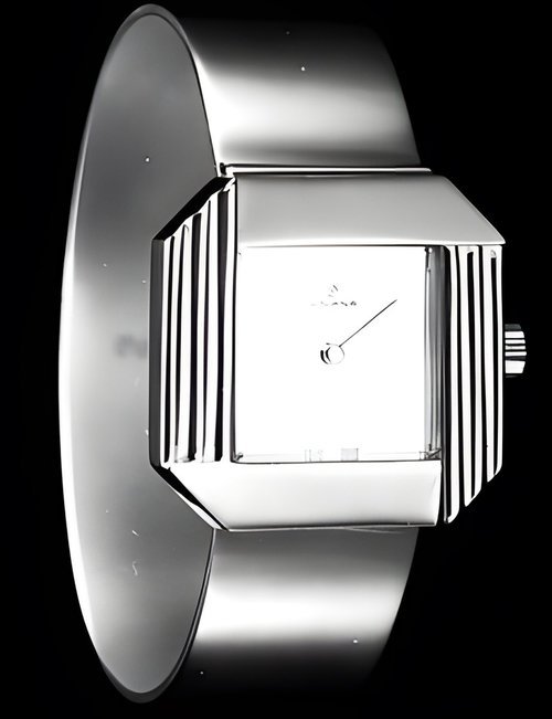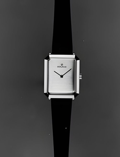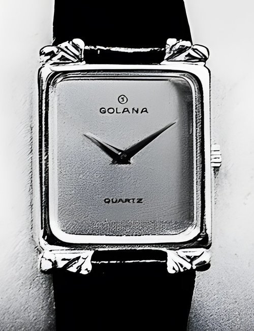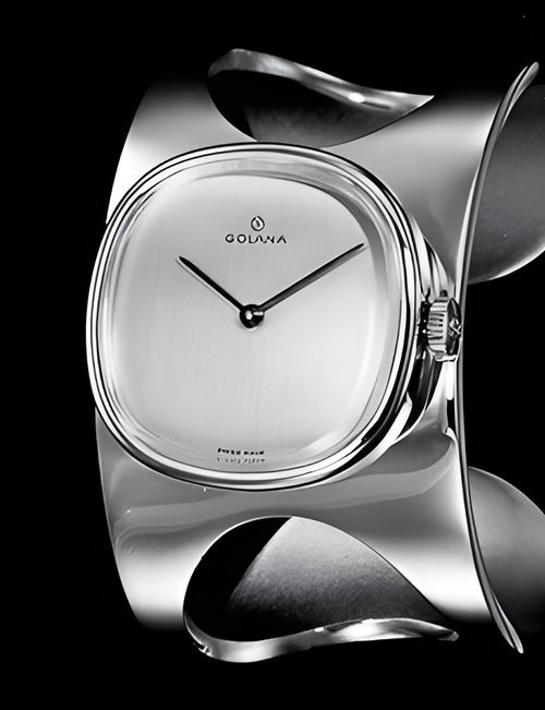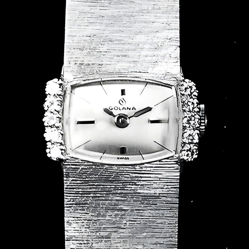 A cambered rectangle dial, with 5 brilliants on either side, gives this dainty 18ct grey gold watch discreet elegance. (GOLANA)