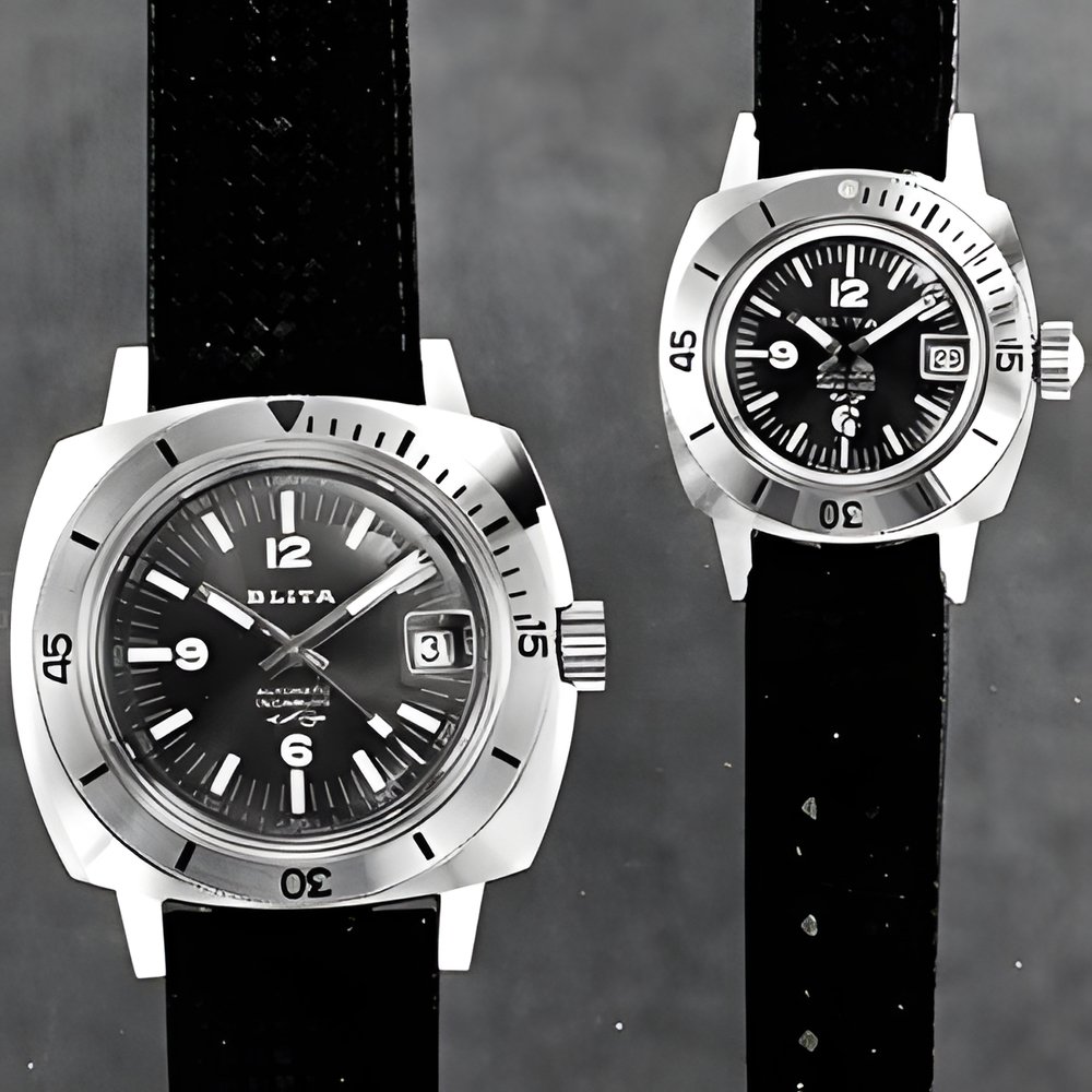 His and Hert s waterproof divig watches. Identical steel cases, guaranteed water-resistant to 200 meters (660 feet). Automatic movement with calendar, grey and red dials. (BLITA)