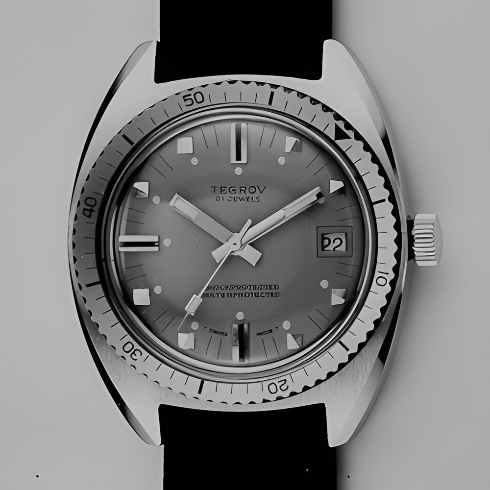 A rugged, shock-protected diving watch with tested water-resistance. Orange dial for greater legibility underwater. Turning bezel. (SCHAUB - TEGROV)