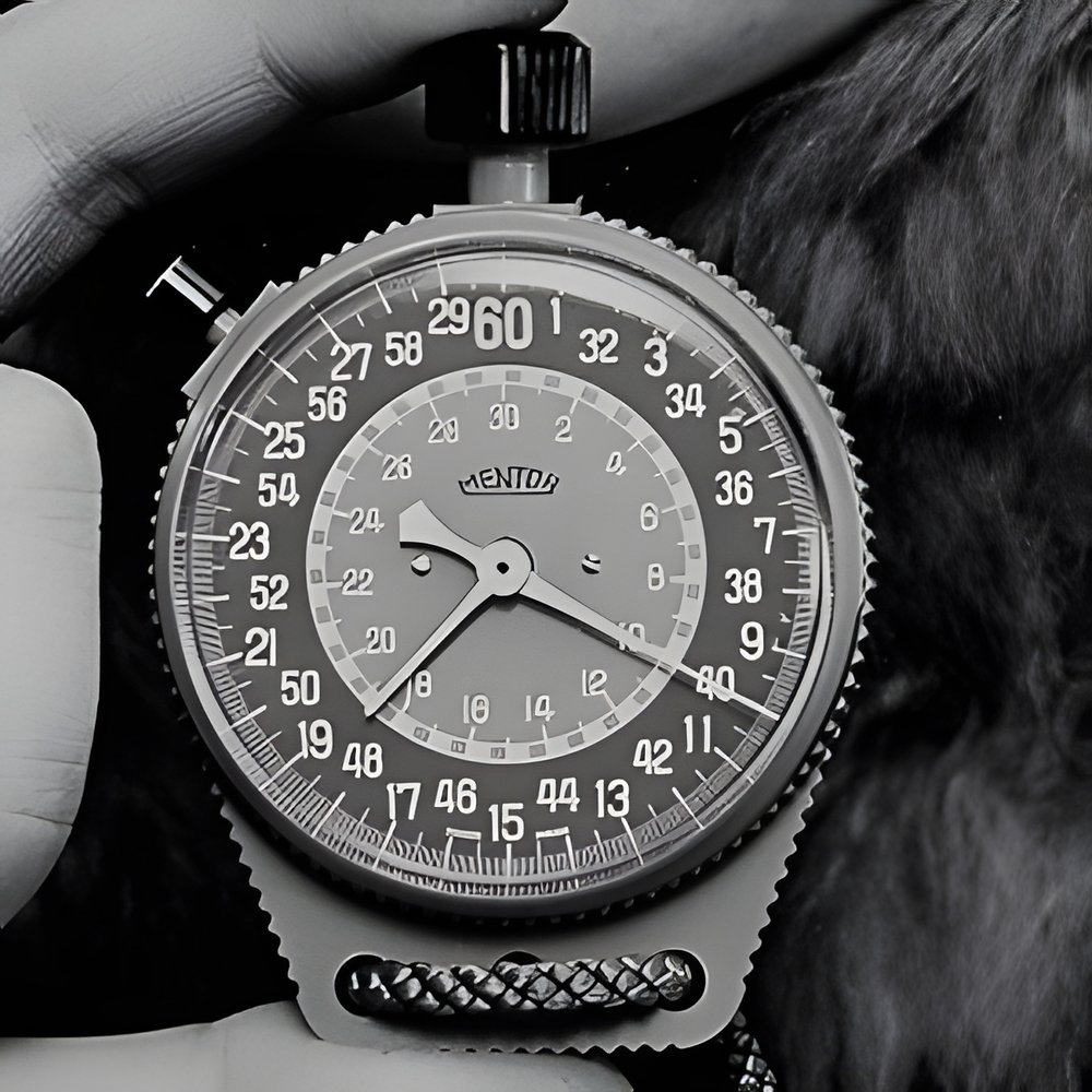 The sports timer : a must for the busy, active life of today Skiing competitions, car racing, track and field 0 or even simply to boil your eggs, all activities calling for a short-time register. This model has a case in synthetic material, making for lightness, water-resistance and shock-protection. The seconds hand makes one revolution every 30 seconds and can be used to calculate tenths of a second. 30-minute register in the centre. (Bader-MENTOR)