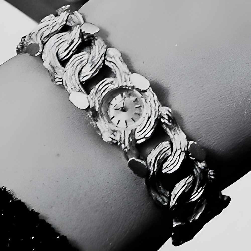 Ever bolder lines for the jewellery watch. Large-link bracelets are increasingly popular. This model is in 18 ct. yellow. Bark-like decor, engraved by hand. (VACHERON & CONSTANTIN)