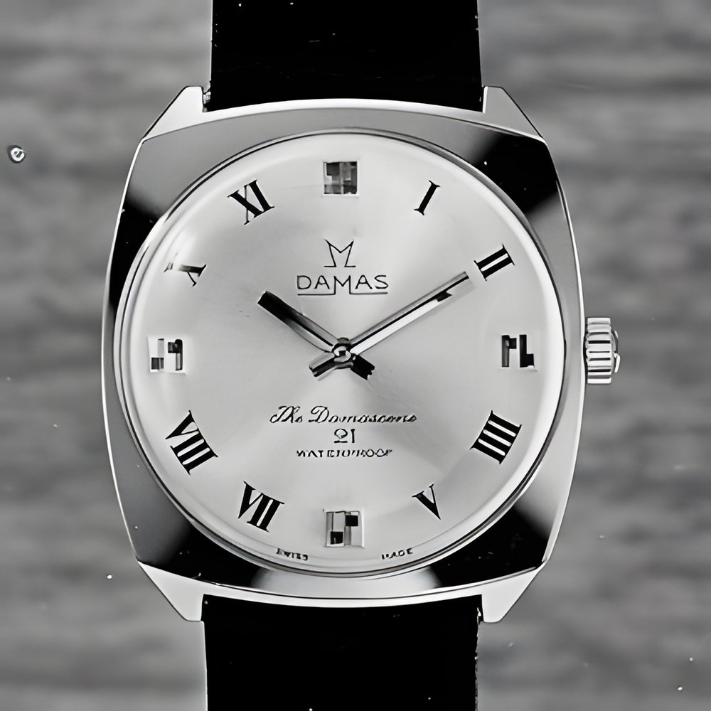 This dress watch embodies the advantages of modern horological techniques. Thanks to its 7’unicoque“or one-piece case, it combines water-resistance and remarkable slimness Its lines reflect present-day trends rounded silhouette and integrated bracelet in steel or all goldplate Available with variously coloured dials. (DAMAS -”The Damascene").