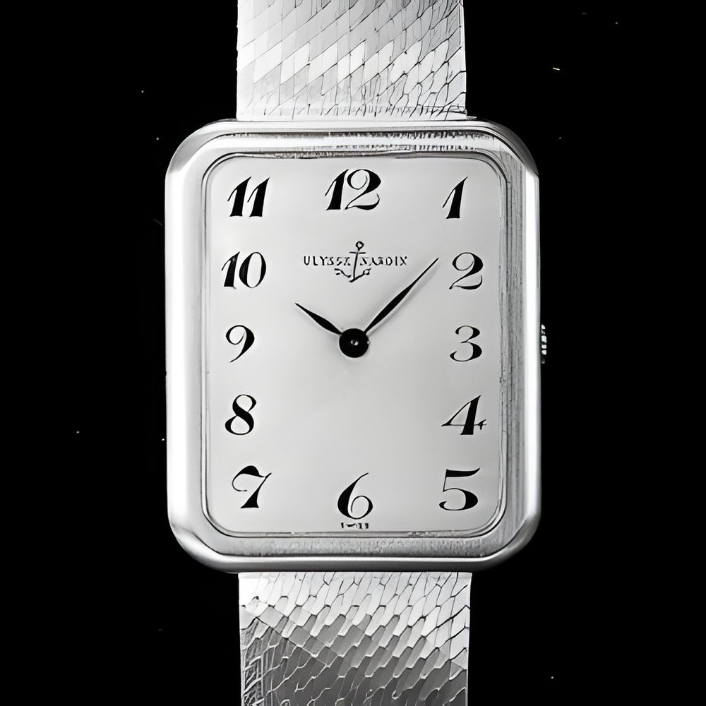 This evening watch in 18ct white gold owes its elegance to its simplicity of lines. The strongly accented Breguet numerals give it distinctive personality. (ULYSSE NARDIN)