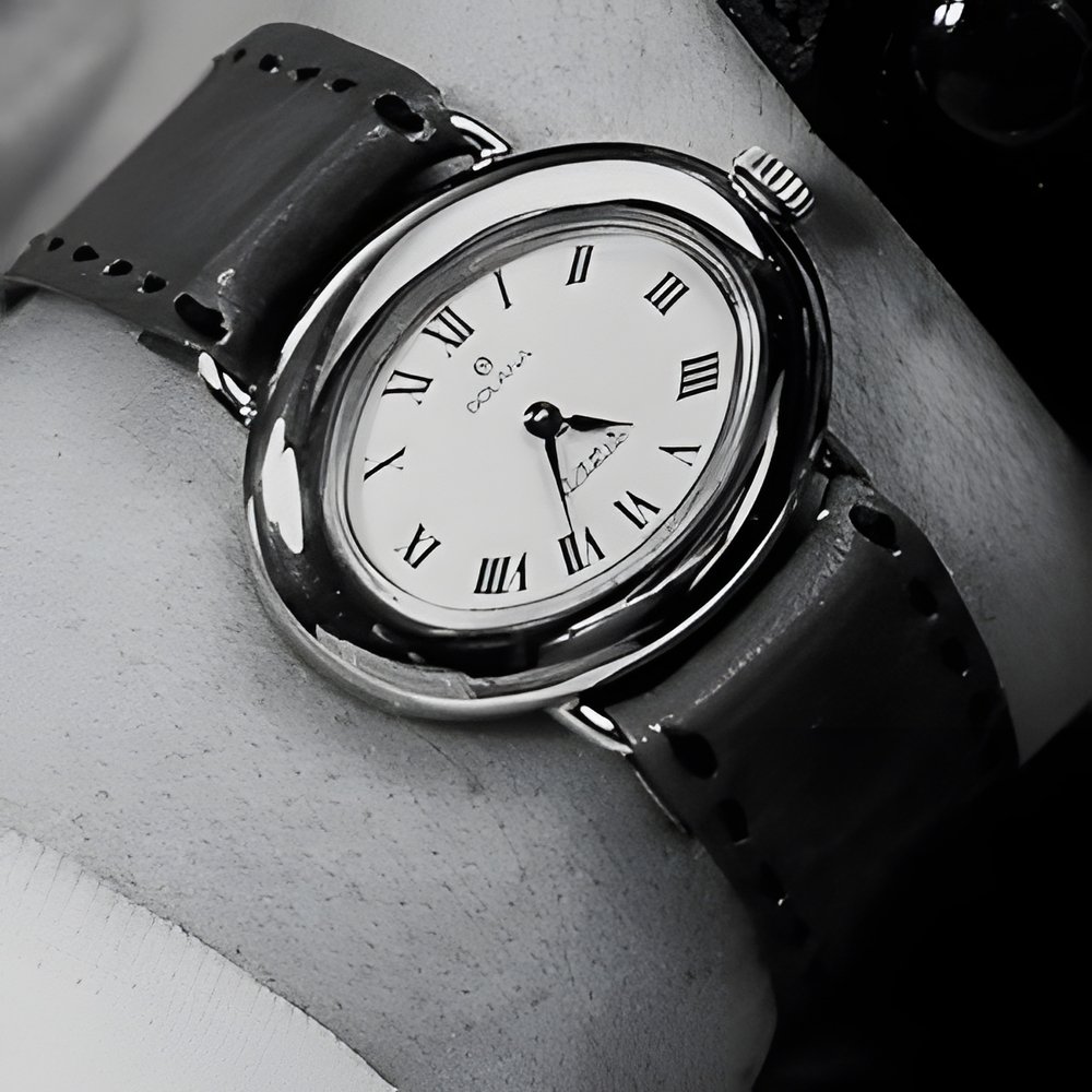 Silver watches are very popular. Presented is a model with a line and size favoured today, neither too large nor too small. The oval case is completely rounded in Tibassinoit fashion.White enamel-like dial with painted Roman numerals. (GOLANA)
