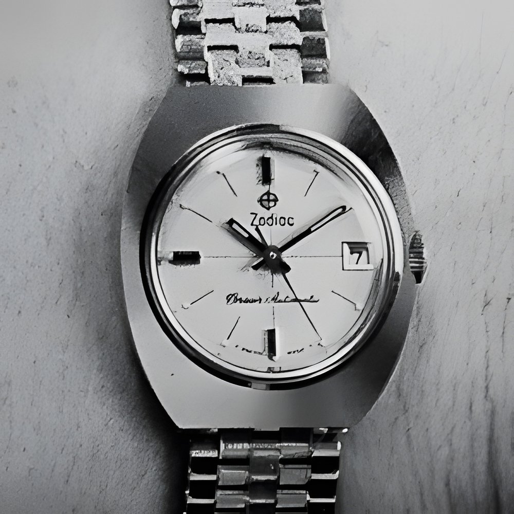Women have taken to automatic watches This now Zodiac modal eloquently demonstrates that a watch that navur needs winding and ologancc of linos can be combined. In addition it is wator-rosistant, shock protected and has a calendar. Available in stool or 18 ot gold. (ZODIAC “Automatic”)