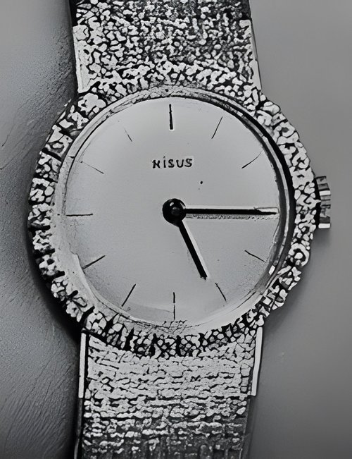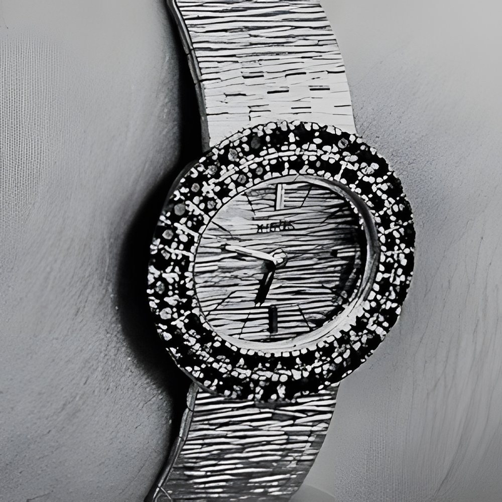 Styling unity at its most elegant with continuation of the bracelet decor on the dial. A twin oval row of precious stones sapphires and rubies add the opulence of their fires. Diamond-cut surface decor. (NISUS)