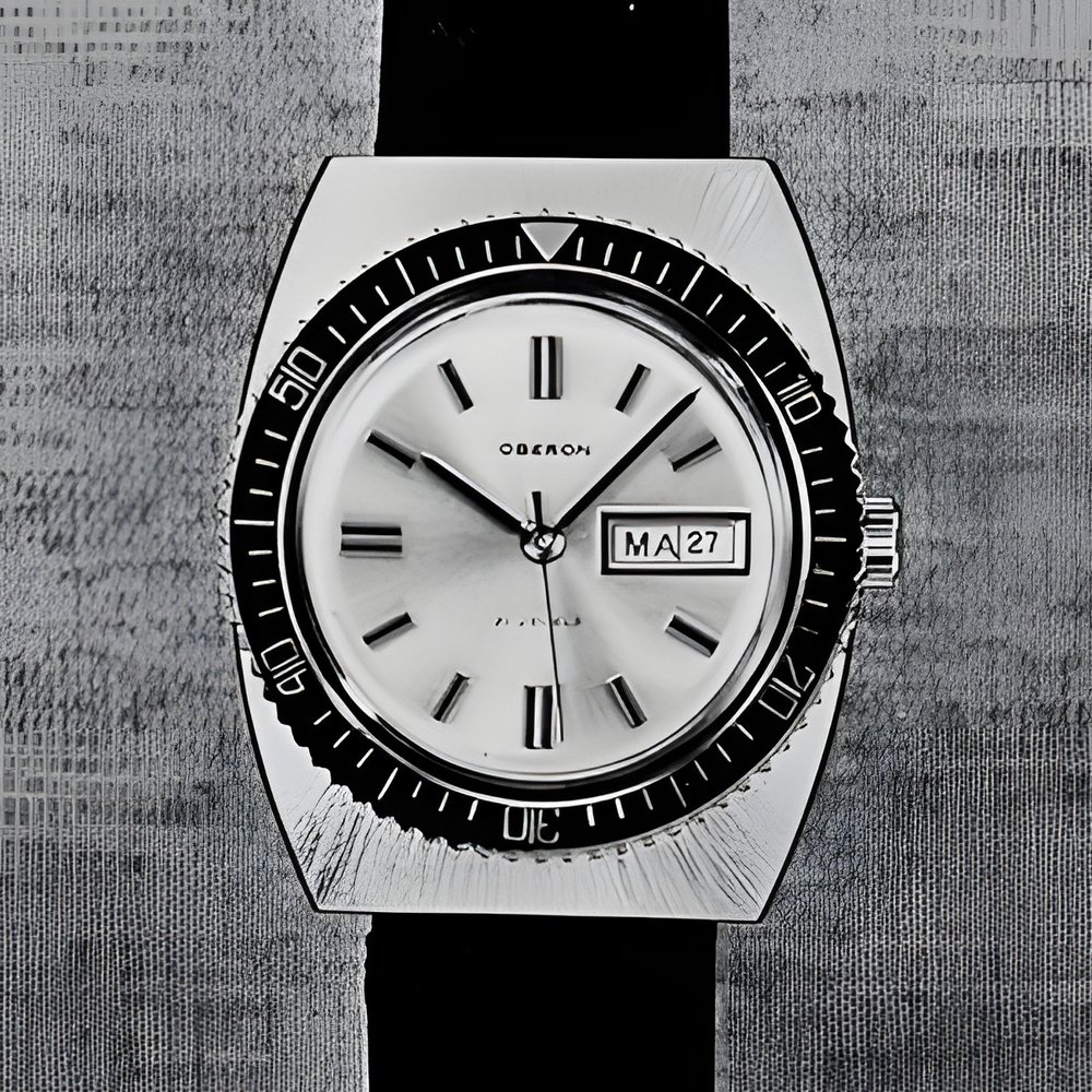 The diverts watch : modern style, robustness, security ... and an inexpensive version. The case is tested to an atmospheric pressure of 5 or 10 atmospheres, i. e. it will stand immersion to a depth of 50 or 100 metres. Automatic movement with a day and date calendar. The bezel turns to measure diving time. Luminous dial. (OBERON)