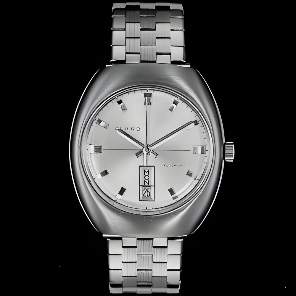 In the van of watch fashion. This model illustrates present-day trends perfectly : “barrel” case, rounded flanks, oval dial, perfectly integrated bracelet. The movement is as modern as its aesthetic beauty : automatic winding, shockproof, day and date calendar arranged vertically at 6 o’clock. (CLARO)