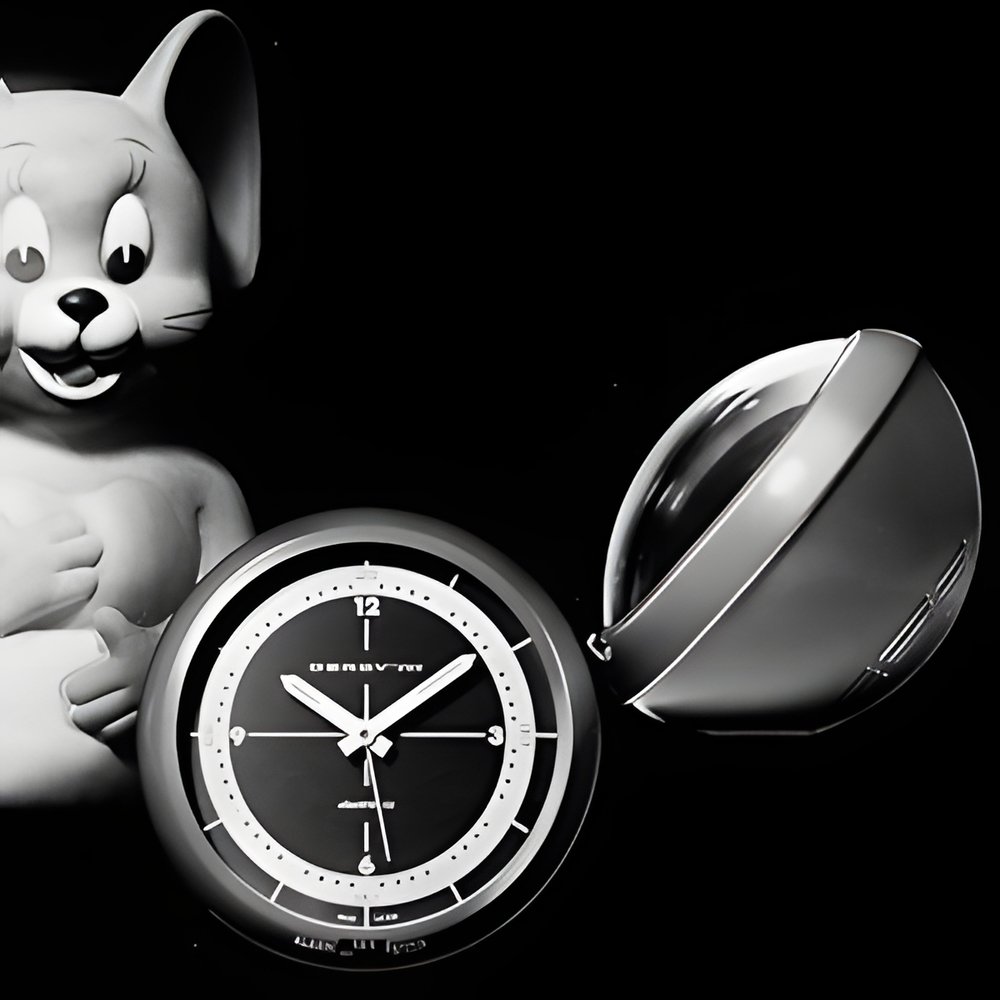 A new small clock with electronic movement. Its distinctive feature is that it always returns to an upright position on its base. Case made of a moulded material (6 colours) and strongly convex glass. Choice of dials. Electronic alarm system with controls in front. (DERBY - Vox)