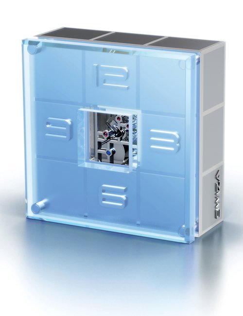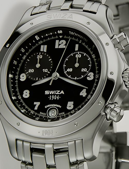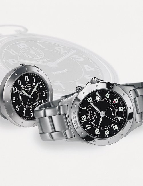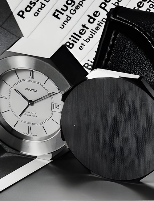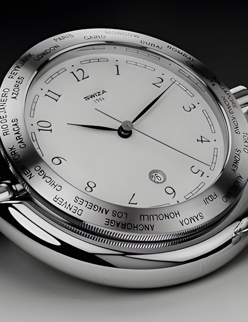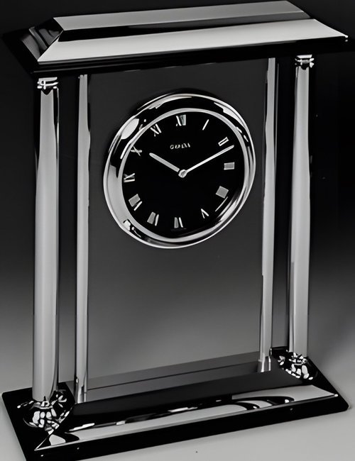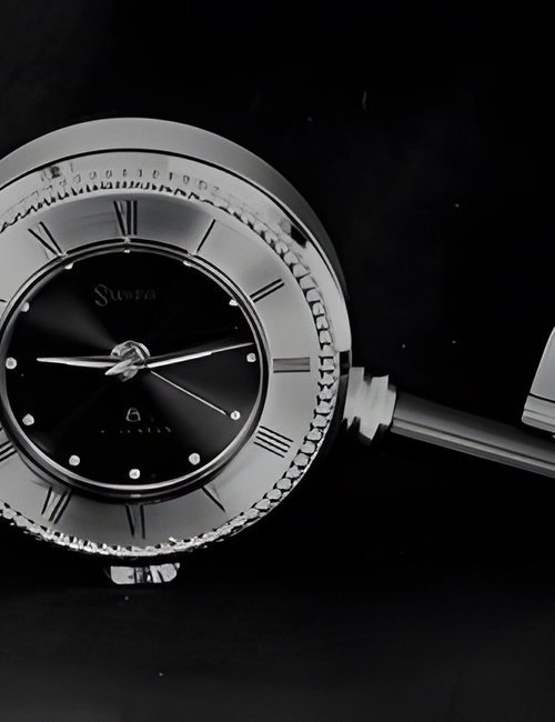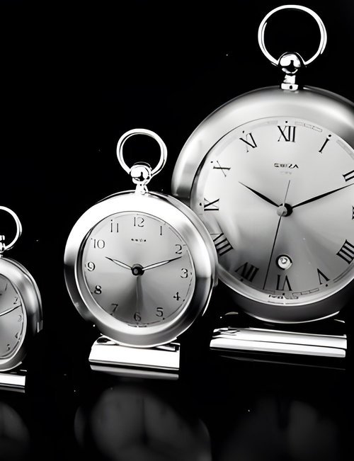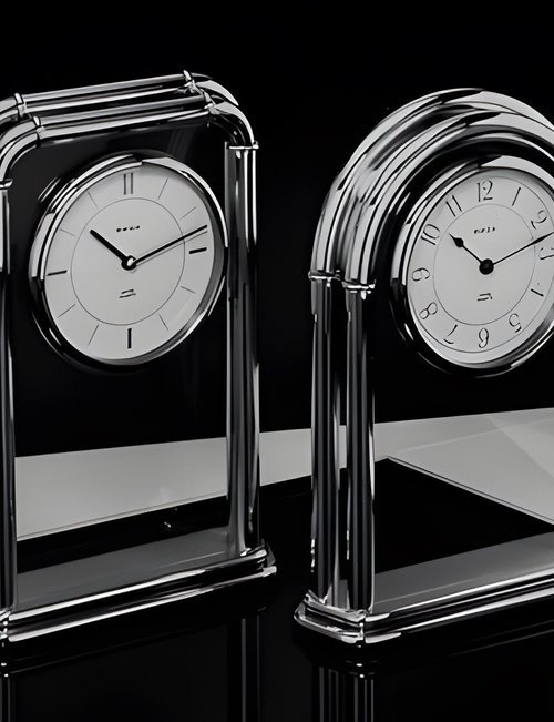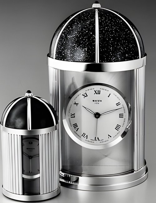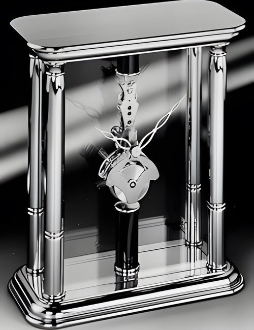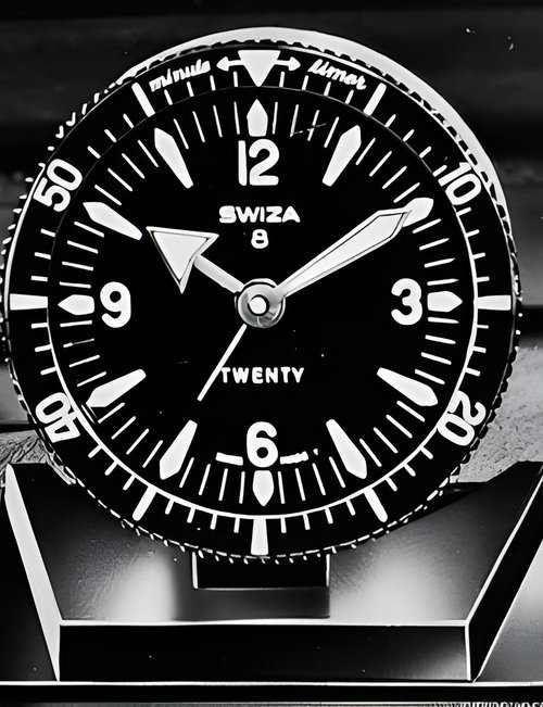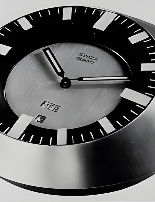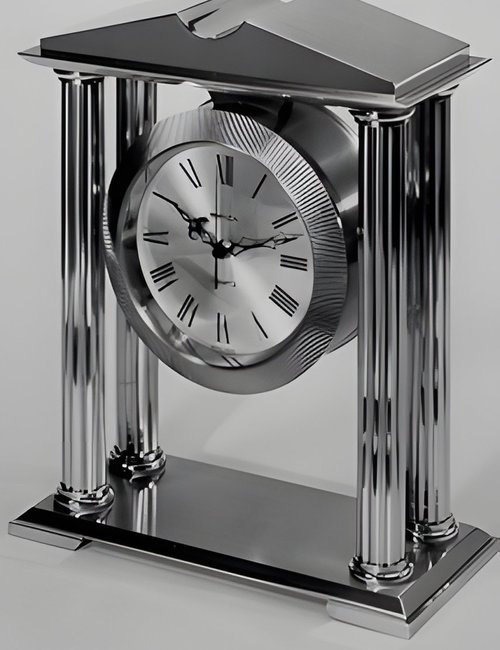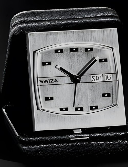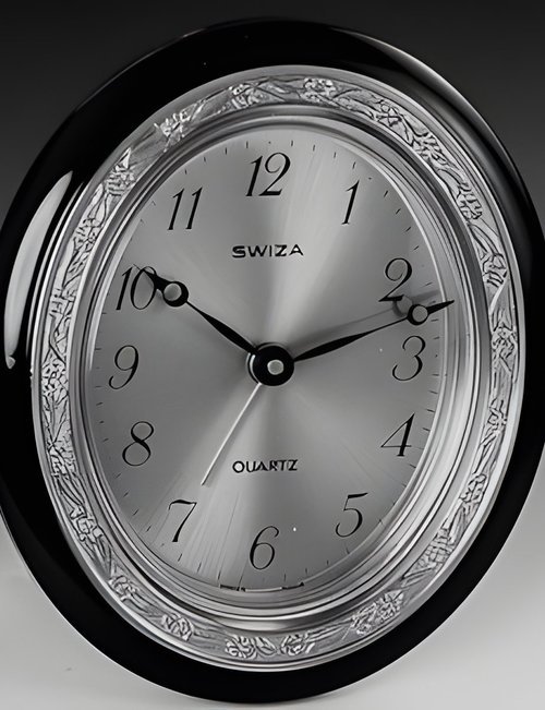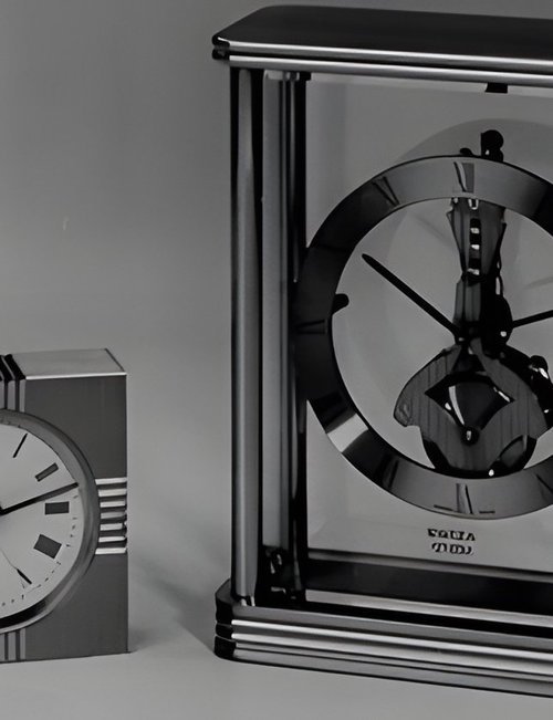 Small modern alarm with dial in imitation lapis lazuli. Gilt metal case with brushed bezel in which the calendar aperture is located. 8-day movement. (SWIZA)