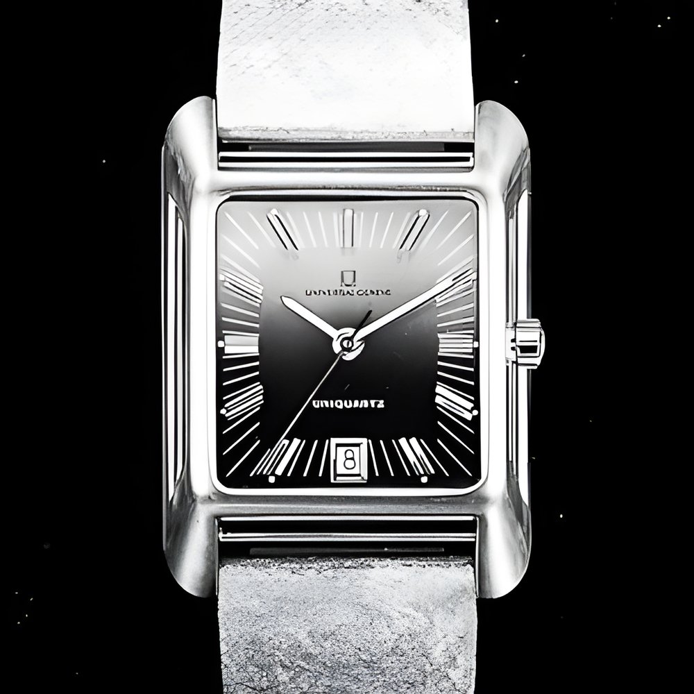 The new quartz electronic wristwatch whose introduction coincides with the opening of the 1970 Basle Fair. It is designed to provide a precision of the order of one tenth of a second per day. The case is in 18 carat gold and the dial’s precise divisions are indicative ot its extreme accuracy. (UNIVERSAL “Uniquartz”)