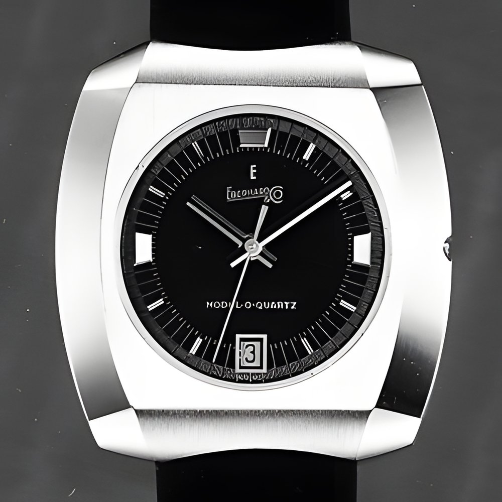 The quartz watch, a marvel of modern technology. Its electronic heart vibrates at a rate of 81192 cycles per second The vibrations are then reduced by electronic frequency dividers with integrated circuits. Accuracy to within a few seconds per years The model is in 18 carat gold. (EBERHARD)