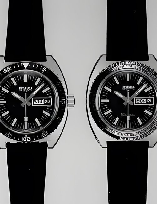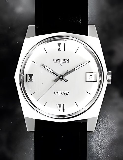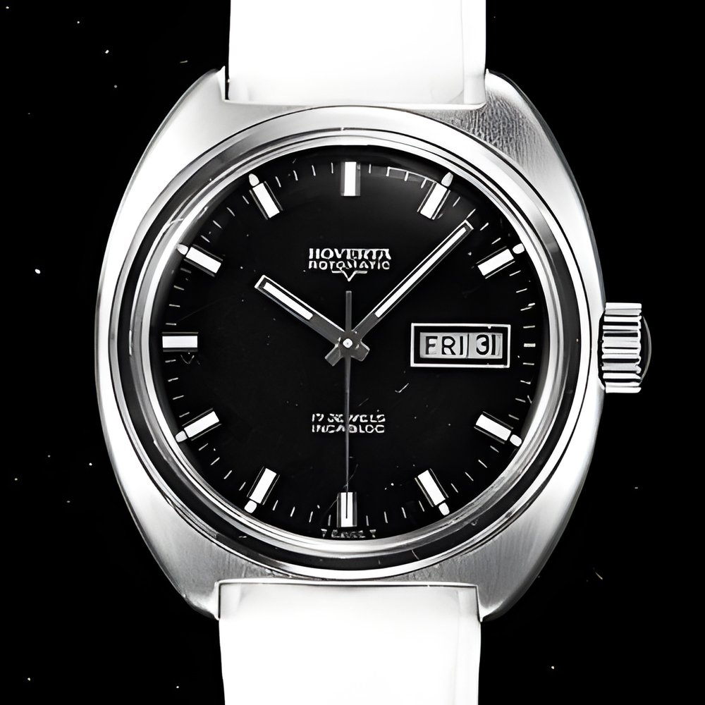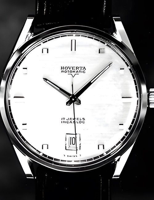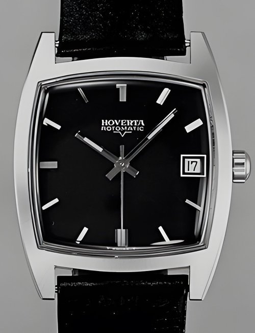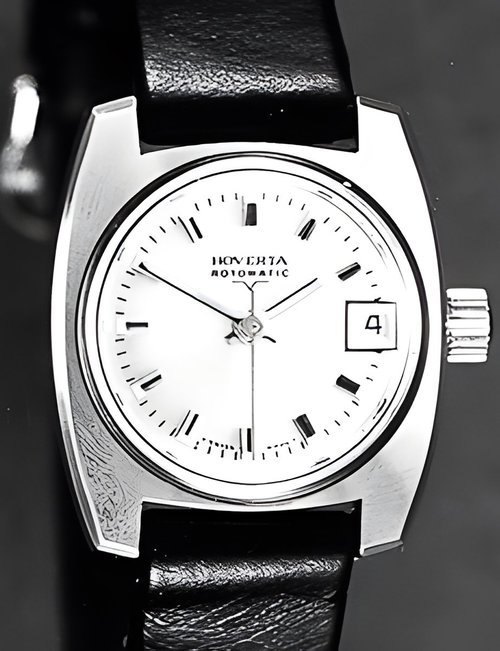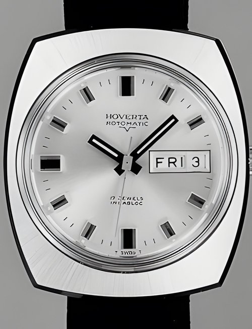 A town-wear watch vìith water-resistant case tested to a pressure o! 20 atmospheres. This corresponds to a depth of 200 metres under water. Automatic movement with day and date calendar. (HOVERTA “Rotomatic”)