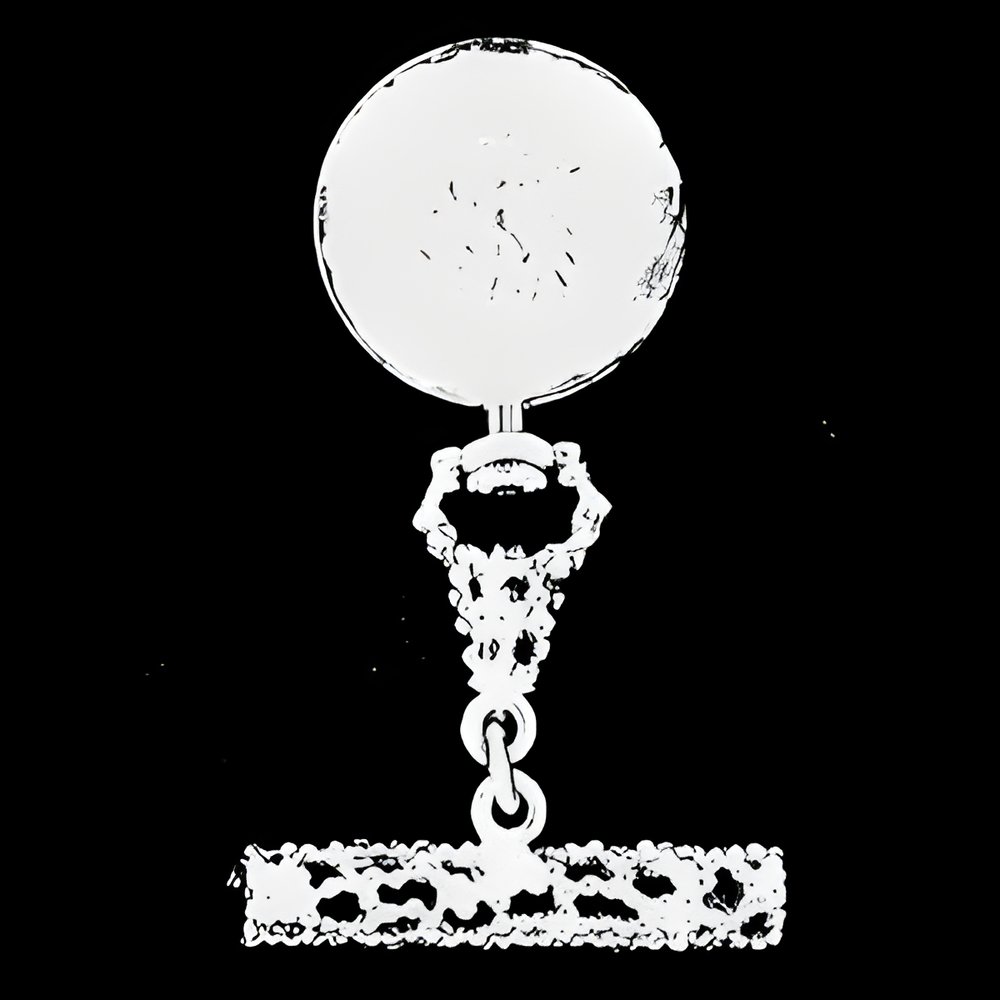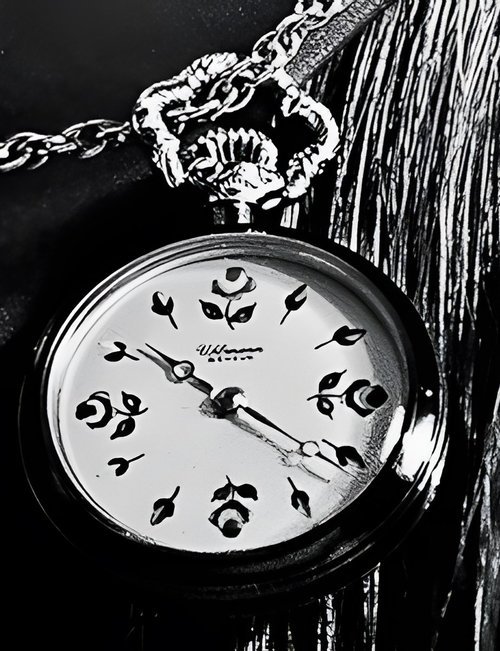 Here is a back view of a small 18 carat gold lepine watch and its pin. The case’s satin-finished surface is delicately engraved. (UHLMANN “Linor Bouton”)