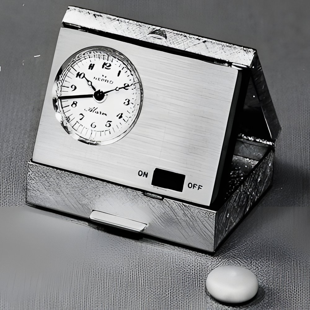 A tiny pillbox equipped with an electronic ring alarm clock, the world’s smallest alarm of. its type The alarm wakes or reminds not only by its sound but also by its electronic frequency. The battery life is over one year. (NEPRO “Pillalarm”)