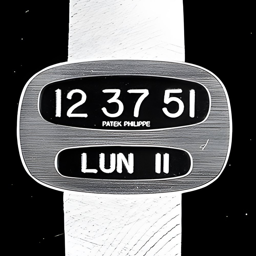 The watch of tomorrow - as seen by Patek Philippe. It symbolize the evolution of horological electronics. Its principal characteristics are: simplified, direct reading of time (hours, minutes, seconds) and date (day and date) and the elimination of any secondary elements. Its design is also extremely modern and does away with all unnecessary ornamentation. Such a watch could easily represent the working tool of future generations. (PATEK PHILIPPE)