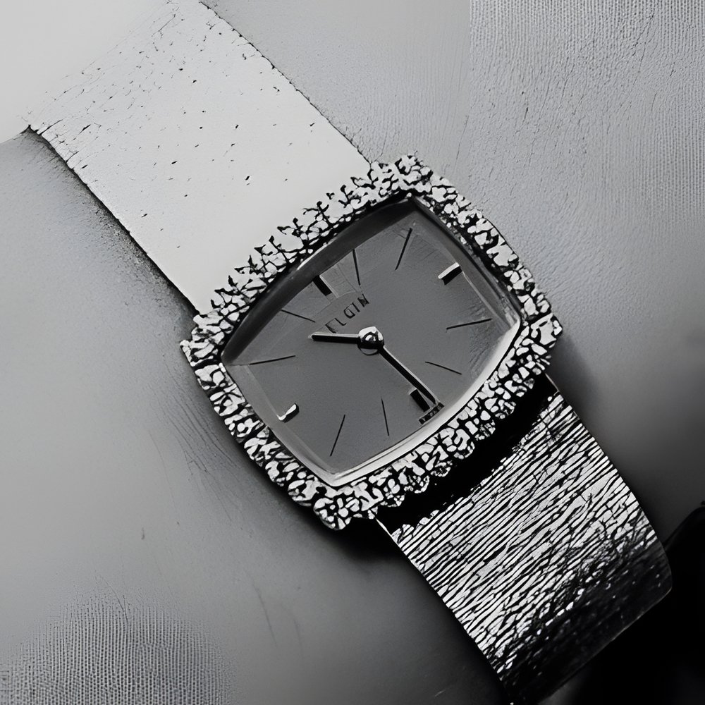 A classical jewellery-watch with softened lines In 18 ct. white gold with a row of brilliants set on the bezel. (ELGIN)