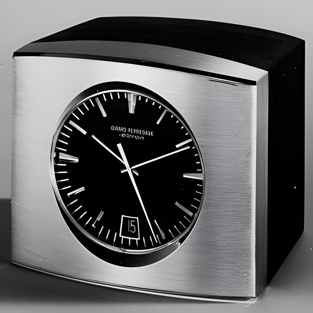 A very compact quartz electronic desk clock. Its accuracy is in the range of 0.1 second per 24 hours. With calendar. (GIRARD-PERREGAUX “Elcron”)