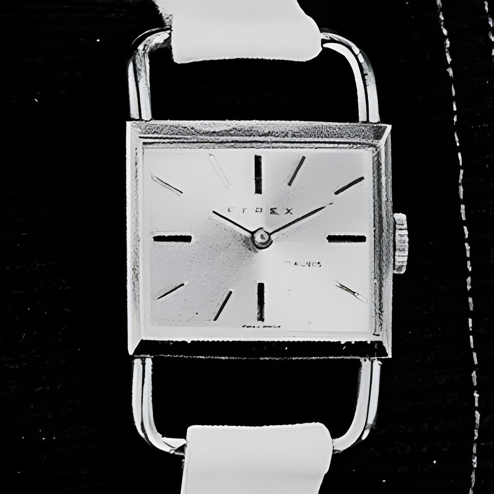 A model with very youthful styling, remarkable slim transversal case. Wide silvered dial with raised gilt hour markers. Gilt metal case. Economical model. (FEREX)