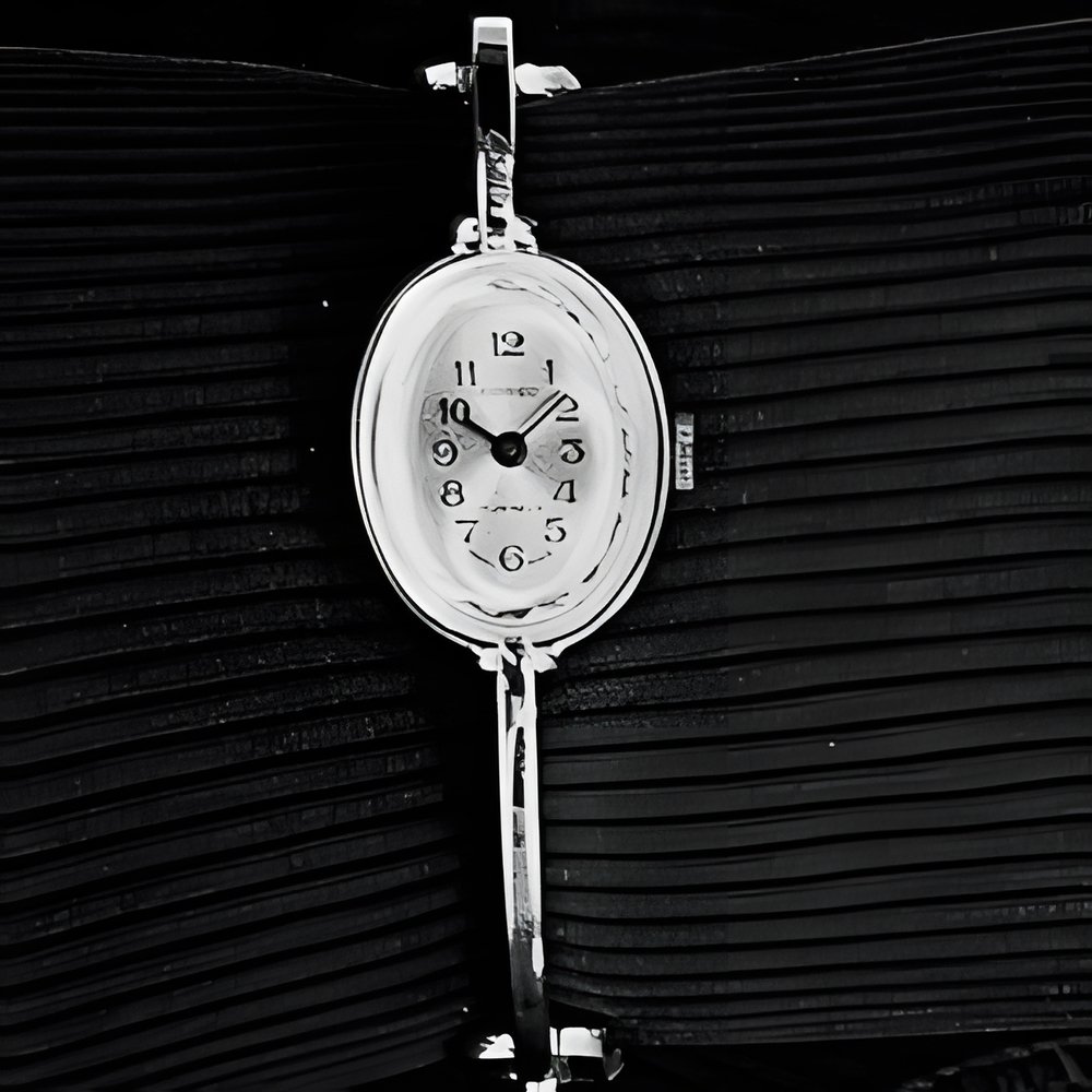 On the finger is a ring-watch, the diamond-cut crystal of which is held on the rhodium-plate frame by four large claws. The wrist-watch’s original bracelet is composed of slim clasps which set off the case’s oval lines. (VIATOR)