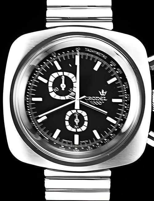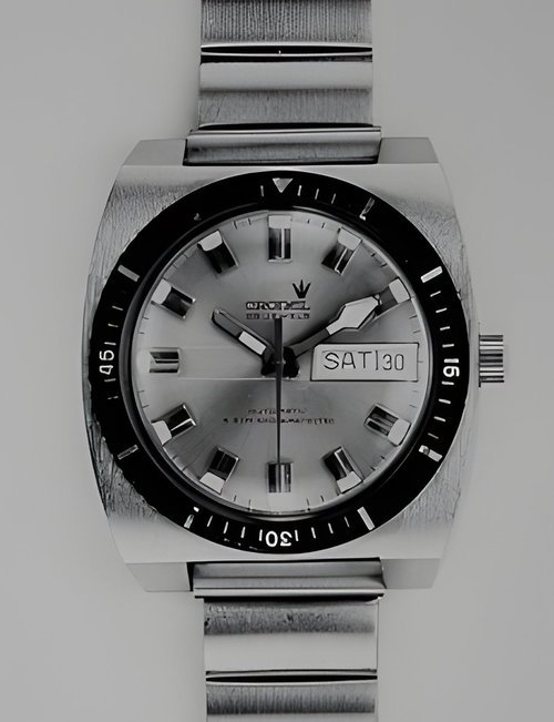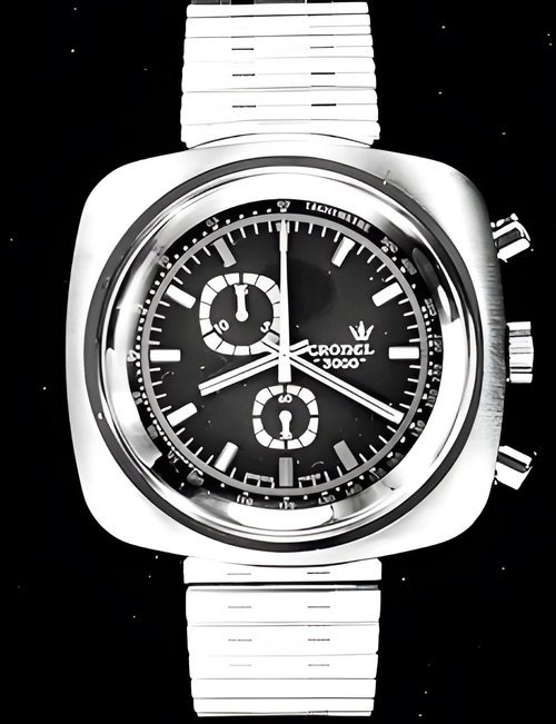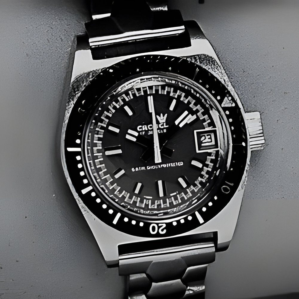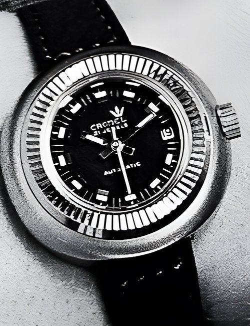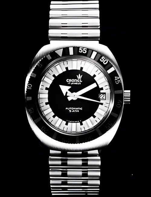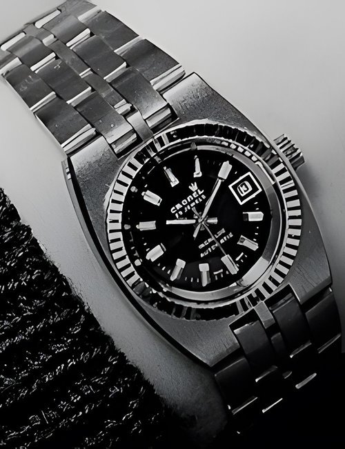 A diving watch - ideal for summer vacations. Even if you don’t swim down to great depths, you’ll benefit from extra security when in the water. Its case is water-resistant to 50 metres. Turning bezel for checking diving times, blue dial, centre seconds and calendar. (CRONEL WATCH CO.)