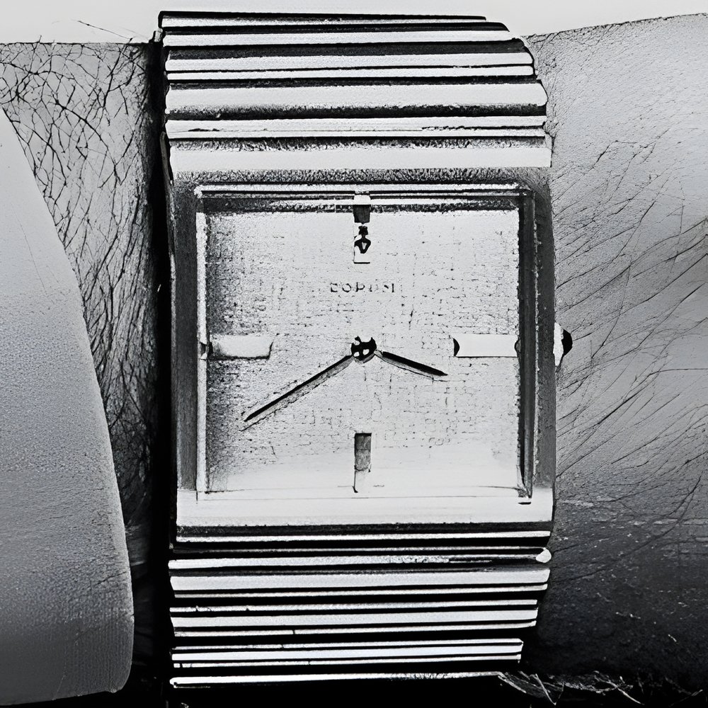 Swiss Watch Fair 1971 BF 181 A true man’ s watch Its wide, powerful design is representative of today’ s return to straight lines. The “Full Flow” style in solid gold with gilt dial. A sapphire cabochon is set into the crown. (CORUM “Spartacus 2000”)