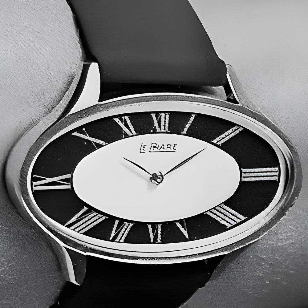 In styling and design, youthfulness reigns supreme. The wide case fits snugly on the wrist. Wide oval dial with blue zone, setting off gilt Roman numerals. Goldplato case. (LE PHARE)