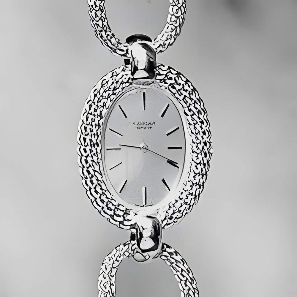 Gold links in 18 carat gold, one of them framing the watch’s gilt dial. This model t s flowing lines are in keeping with the canons of new watch fashions. (SARCAR)