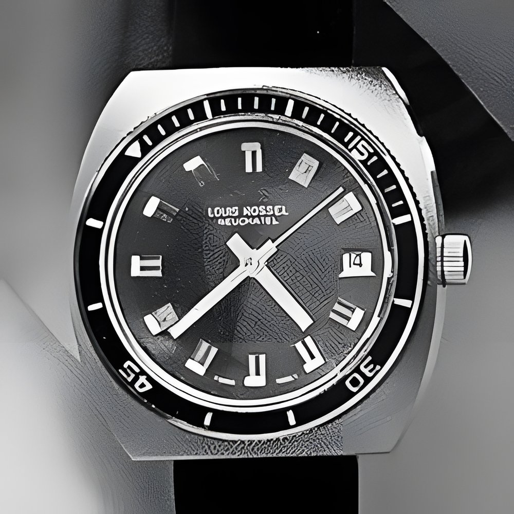 A man’ s watch with water-resistant tested to 20 atmospheres, corresponding to a depth of 200 metres. The specially treated scratchprotected case has a hardness of 1000 Vickers and the tempered mineral glass is extremely resistant. Automatic movement with calendar and fast date-setting mechanism. Turning bezel. (LOUIS ROSSEL - Home Watch)