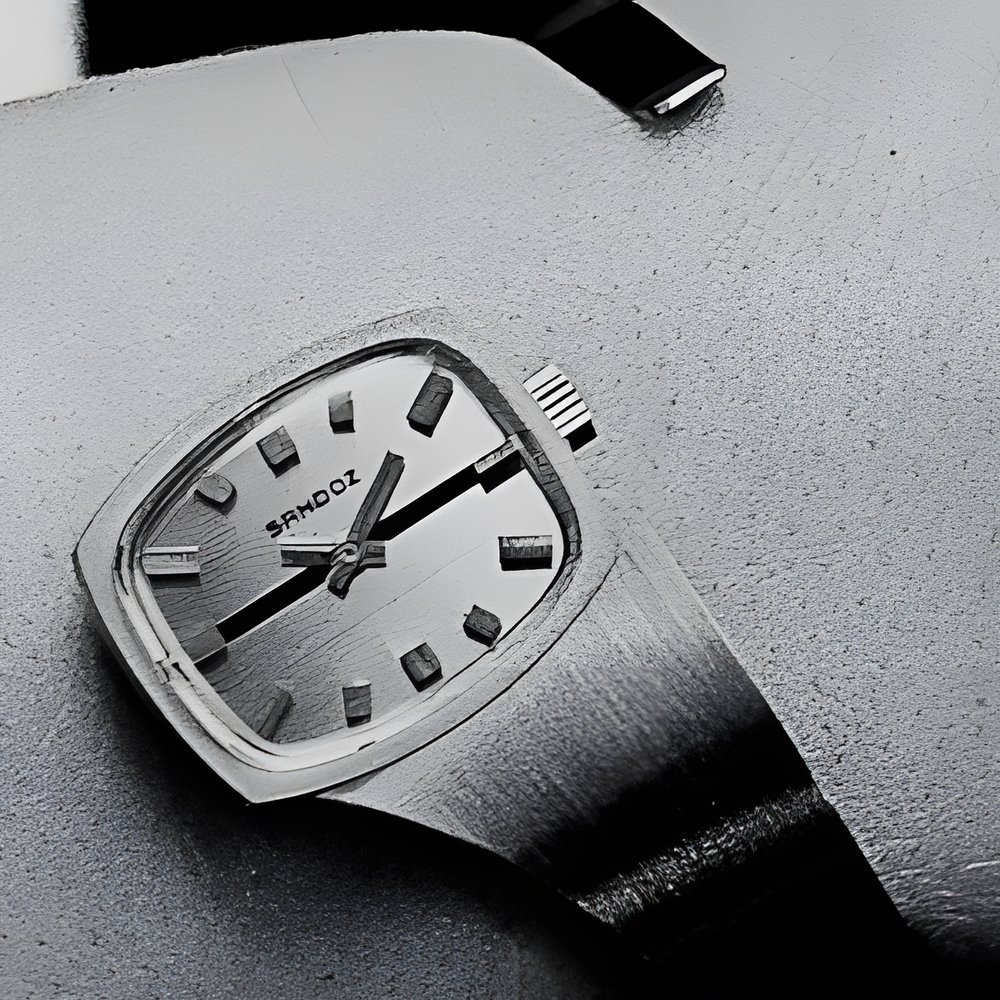 The Snaky? fancy-type watch with wide steel semi-bracelet notable for its suppleness and excellent fit as it winds around the wrist. Dial with “high-rise” hour markers (a most fashionable feature). (SANDOZ - a member of the Société des Garde-Temps)