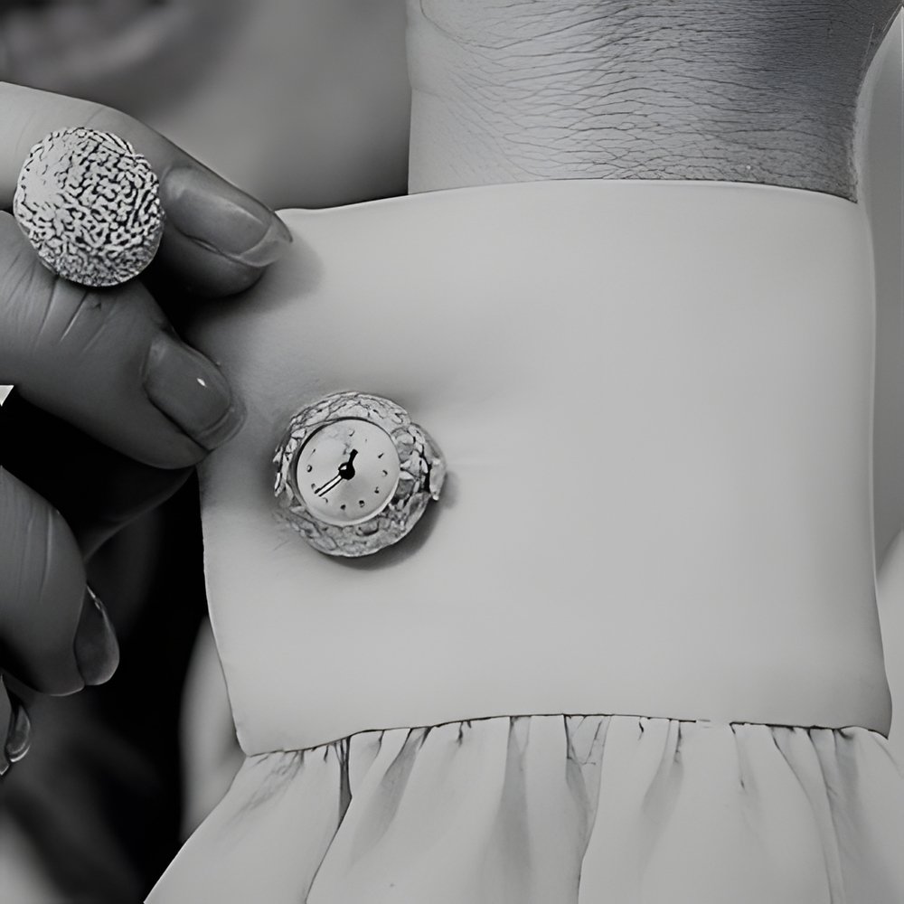Cuff links are very much part of today’ s fashions. This pair has the added advantage of giving the time. A pleasant novelty in goldplate, with black painted numerals (CONSUL)