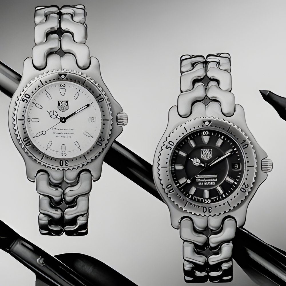 TAG-Heuer now launches its first chronometer model. This “S/el” design with selfwinding mechanical movement has successfully passed the Official Chronometer Testing Authority’s battery of tests (each watch undergoes 16 days of individual tests), earning the right to the title of Official Chronometer. Steel or steel and gold case, water-resistant to 200 m, screw-locked crown, ratcheted one-way rotating bezel, sapphire crystal. (TAG HEUER “S/el Chronometer”)
