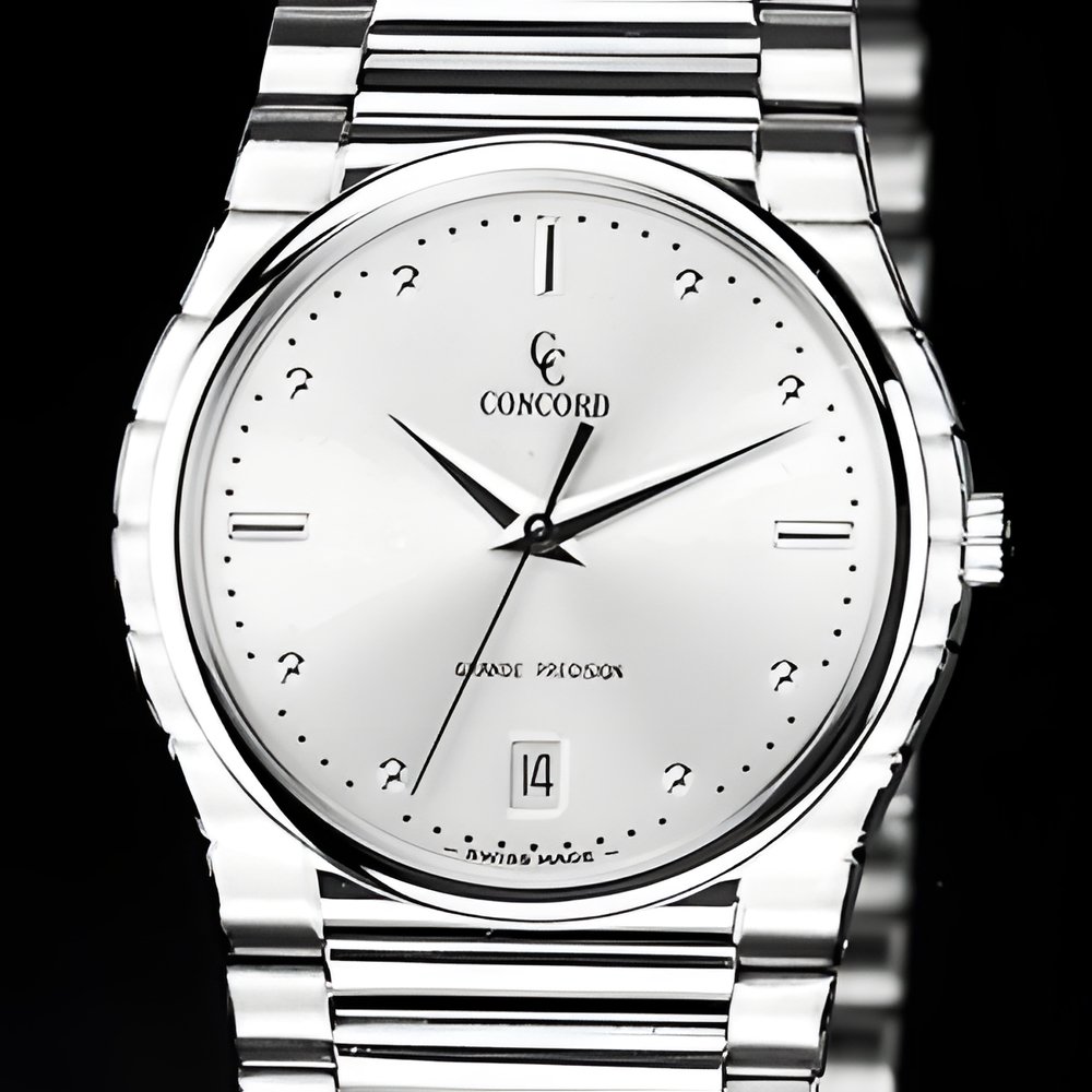 Concord’s “Centurion” collection is reinforced by a prestigious model based on state-of-the-art technology. Its dual-quartz movement provides extremely high precision : a variation of ±10 seconds a year. Called “Grande Précision”, this watch is available in 18K gold and (like all other “Centurion” models) is water-resistant to 30 m. (CONCORD “Centurion Grande Précision”)