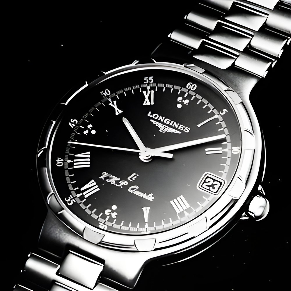 State-of-the-art technology for both the motor and the case. The case of this Longines “Conquest” model blends gold into steel clad in titanium carbide. This alloy is deposited using the physical vapour deposition (PVD) process in the vacuum. The quartz movement is thermocompensated by adding a thermometric quartz, which provides a maximum variation of about one minute in five years. (LONGINES “VHP” Very High Precision)