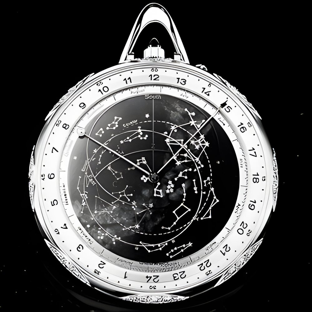 Truly one-of-a-kind, this pocket watch displays dazzling artistry the starry heavens move over its dial and its movement includes an annual calendar. Platinum and 18K yellow gold case set with 80 brilliant-cut diamonds weighing 2.5 carats. (GÜBELIN - “Astrum”)