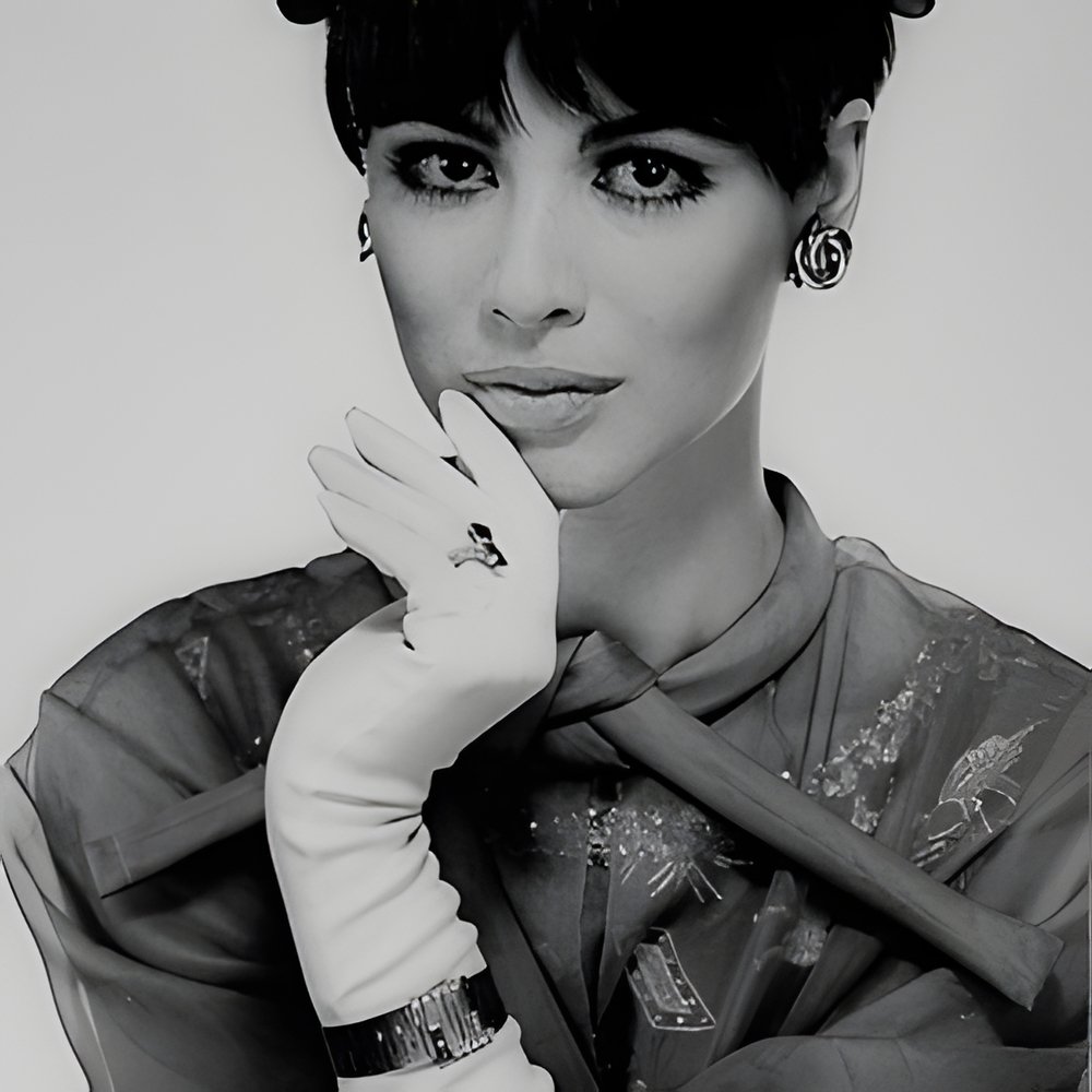 Extra-wide bracelet in grey gold. here, The watch itself is hidden under a lid which is decorated with two coin motifs made up of diamonds and sapphires. (Watch by Girard-Perregaux). The diamond and two sapphire ring is by Weber, Geneva.