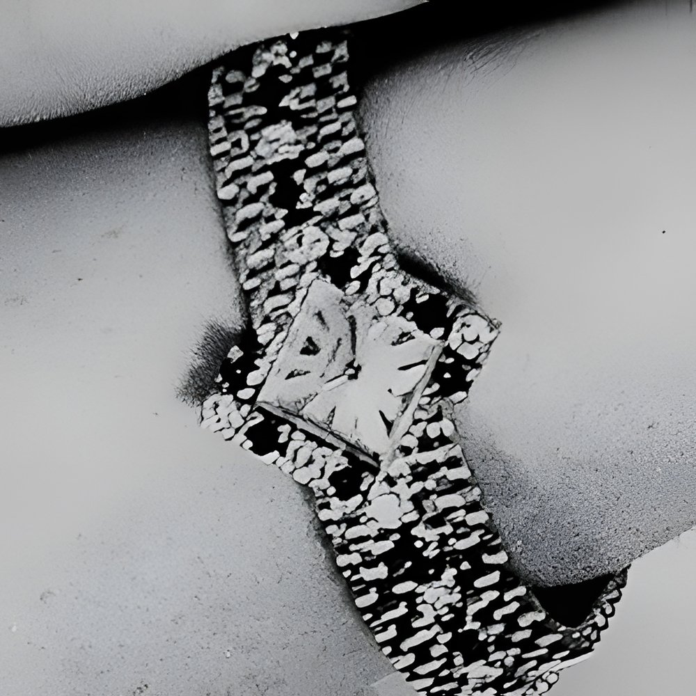 Original note struck by this creation is in the lozenge styling of the case. The bracelet carries two rows of diamonds and sapphires which continue around the bezel without in fact meeting. (Watch by Jaeger-LeCoultre), The diamond ring which holds a large sapphire is by Golay Fils and Stahl.
