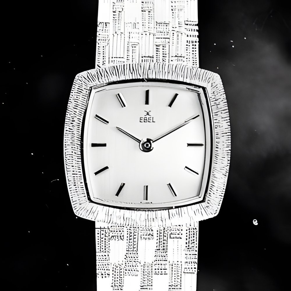 A classic example of “the soft”This largo lady’s watch, now very much in vogue, remains charmingly feminine thanks to the gentle curves given to the shape of the watch case. Special fashion note : the finely engraved case and dial. (EBEL)