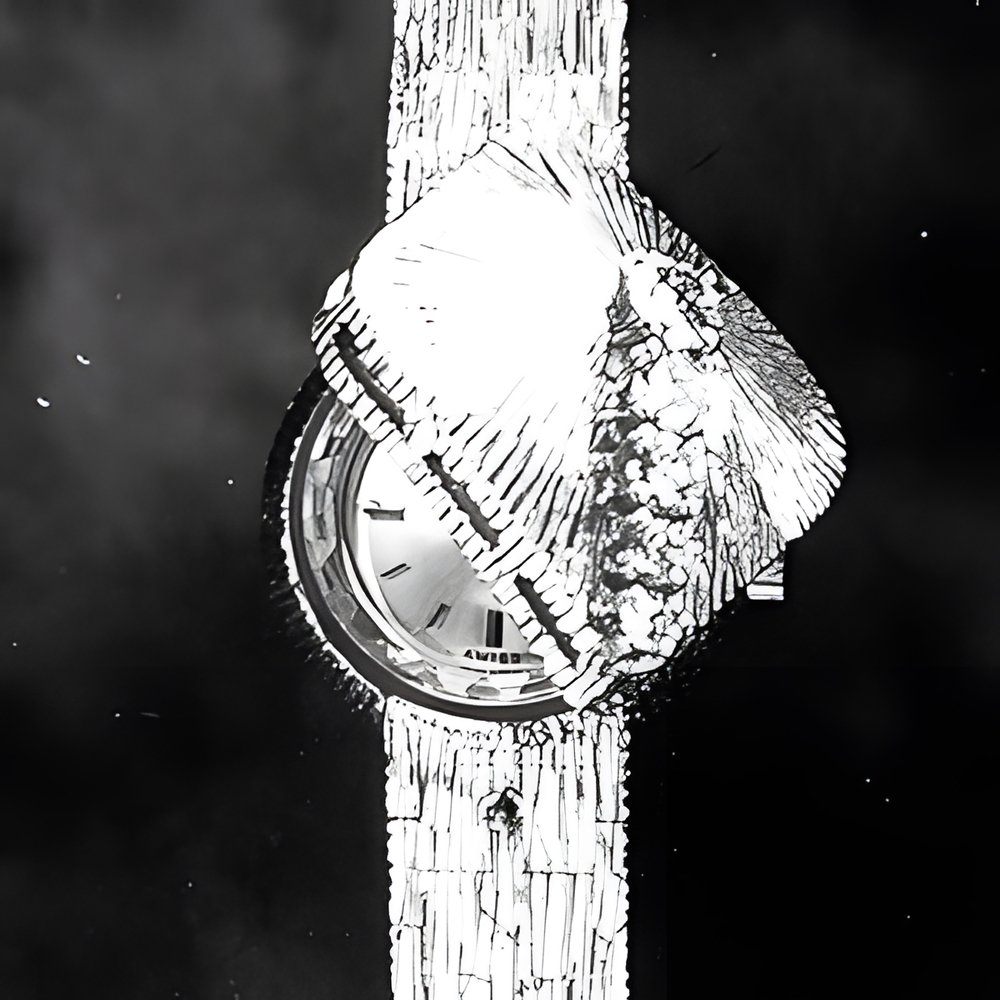 Here’s a watch that breaks away and. also follows the latest fashion trends at “Montres & Bijoux”. Break-away design feature the lozenge shaped decoration which conceals the dial. Trend feature the finely engraved bracelet. In grey gold, with diamonds. (GIRARD-PERREGAUX)