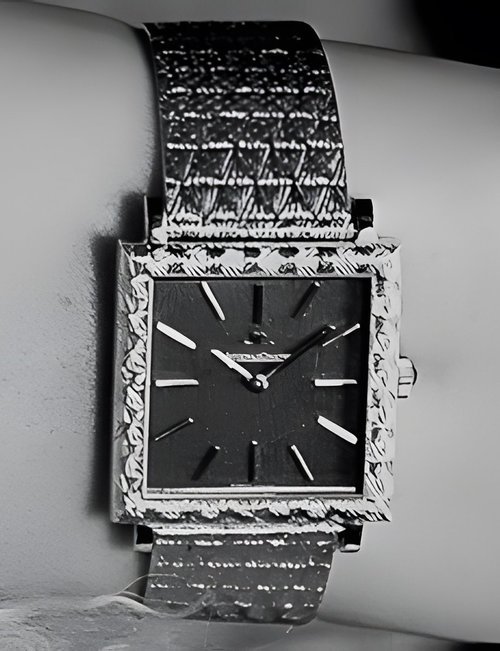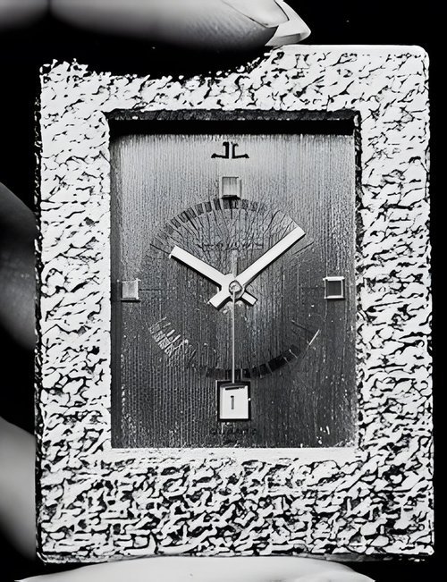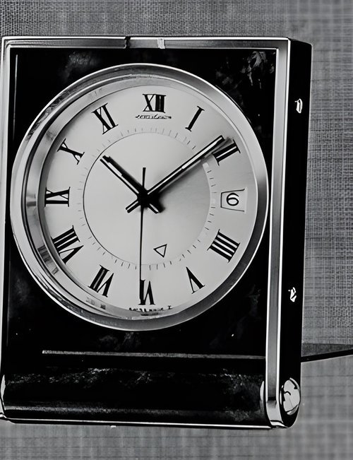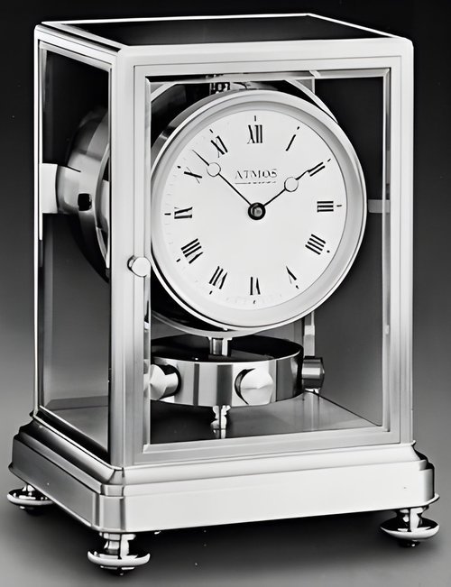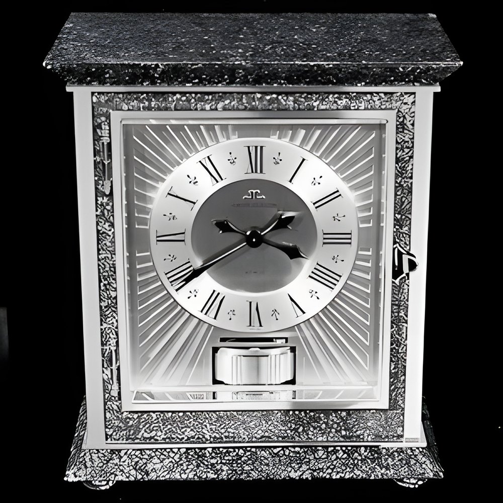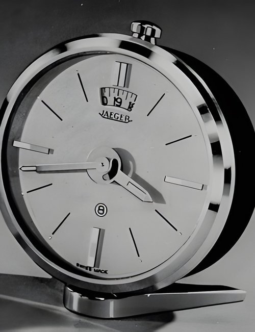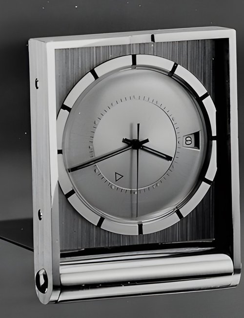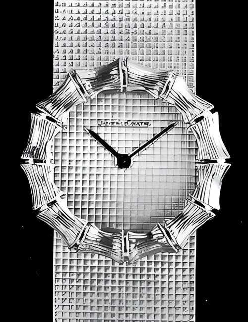 A magnificent example of the “Atmos clock This clock”lives on air“. The slightest variation of temperature suffices to keep it fully wound. The case is in Ulapis lazuli”. Fashionable Roman’ numerals. Design theme : the rays of the sun (JAEGER-LECOULTRE)