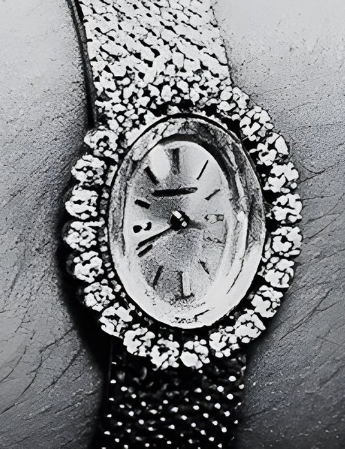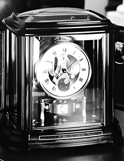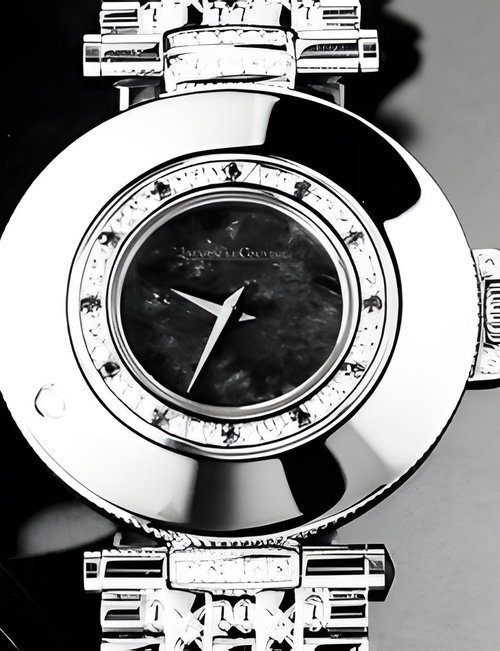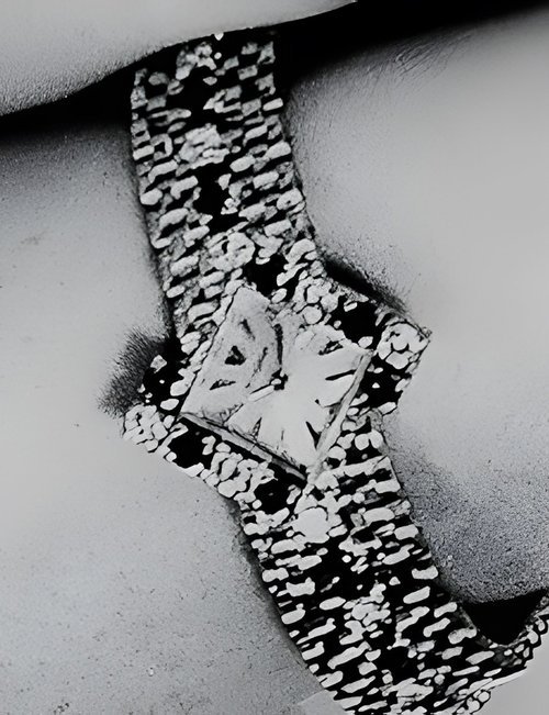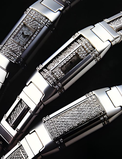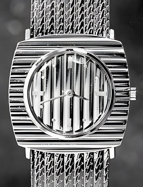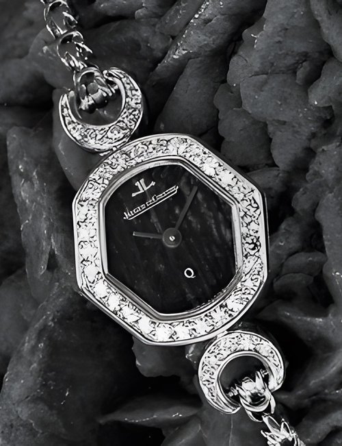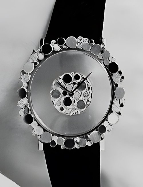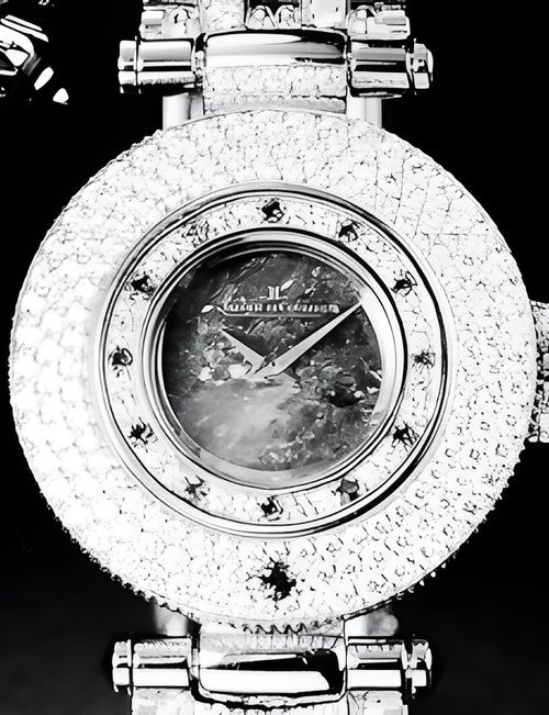 A magnificent example of the “Atmos clock This clock”lives on air“. The slightest variation of temperature suffices to keep it fully wound. The case is in Ulapis lazuli”. Fashionable Roman’ numerals. Design theme : the rays of the sun (JAEGER-LECOULTRE)